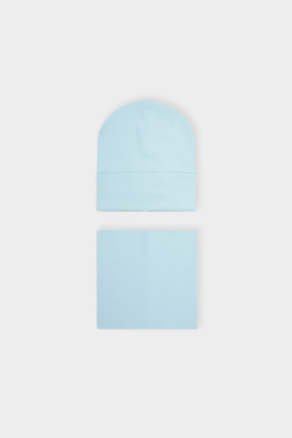 Комплект детский: шапка и снуд из хлопкового трикотажа в рубчик с добавлением эластана, окрашенного стойкими гипоаллергенными текстильными красителями. Изделия хорошо тянутся, после многократных стирок сохраняют цвет и форму.