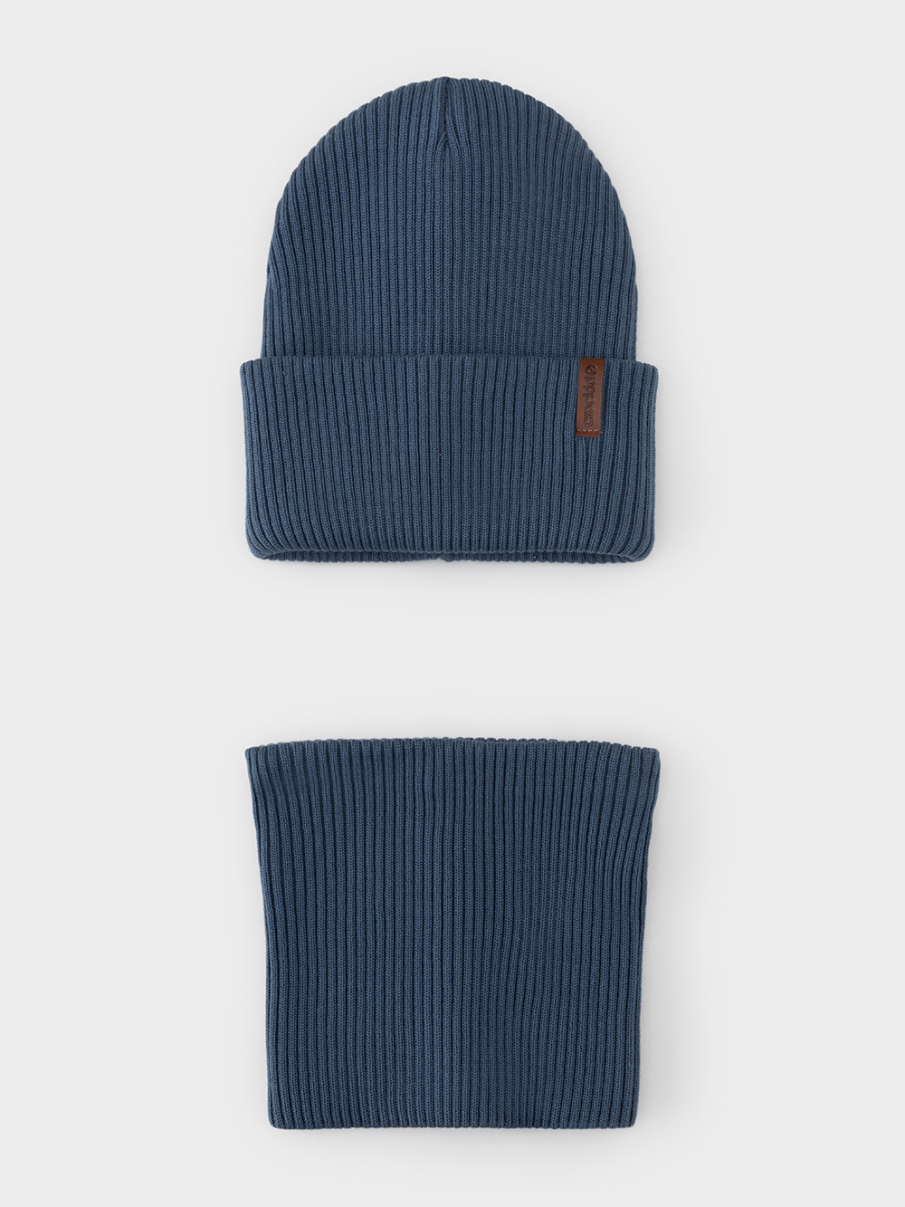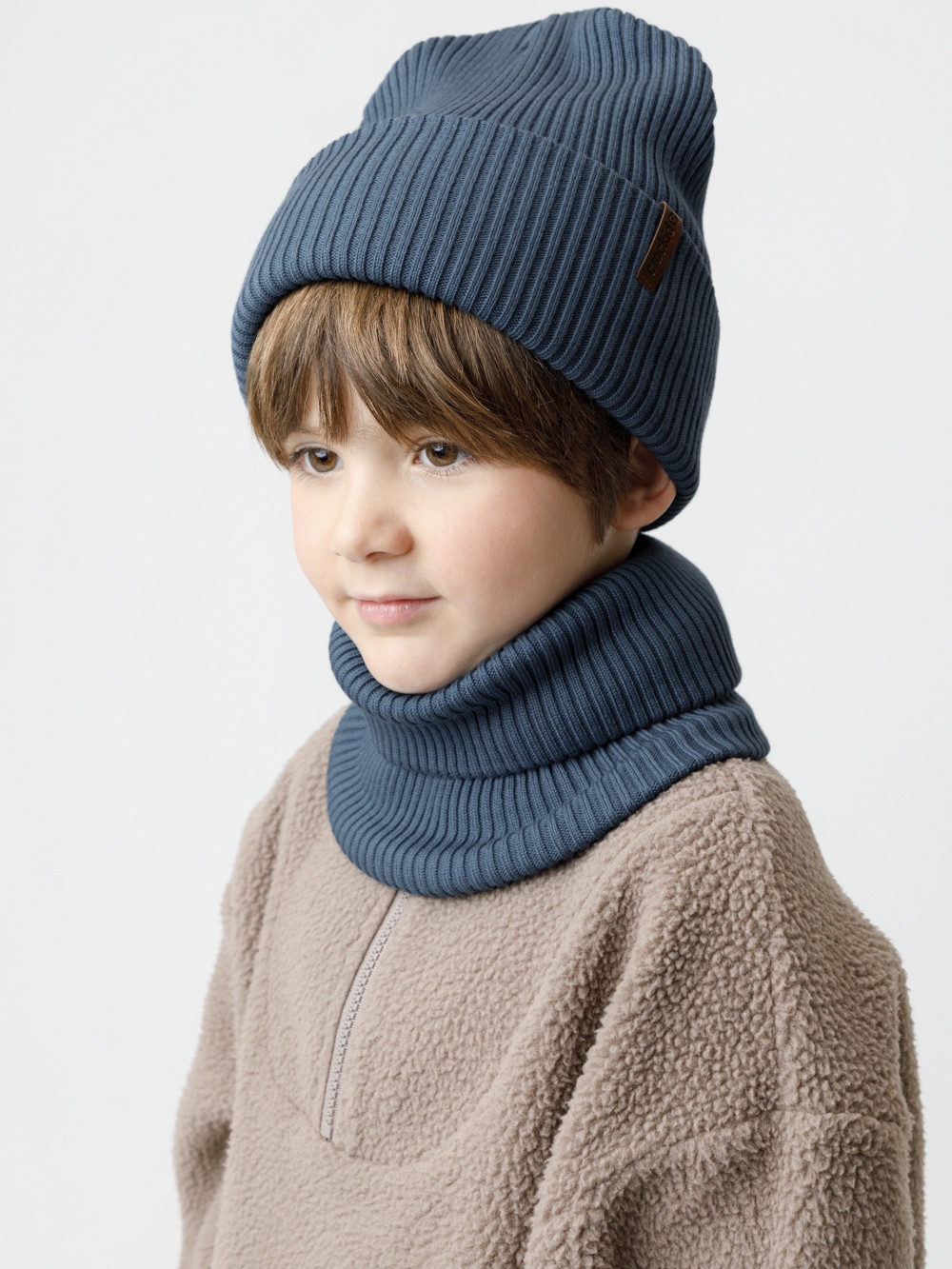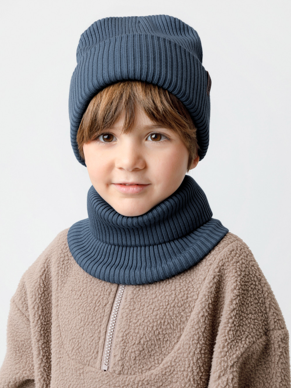 Комплект демисезонный из шапки с отворотом и снуда. Связан из высококачественного хлопка и выполнен переплетением ластик. Комфортно прилегает, обеспечивая защиту от холода и хороший теплообмен. Изделия хорошо переносят многократные стирки, сохраняя цвет и форму.