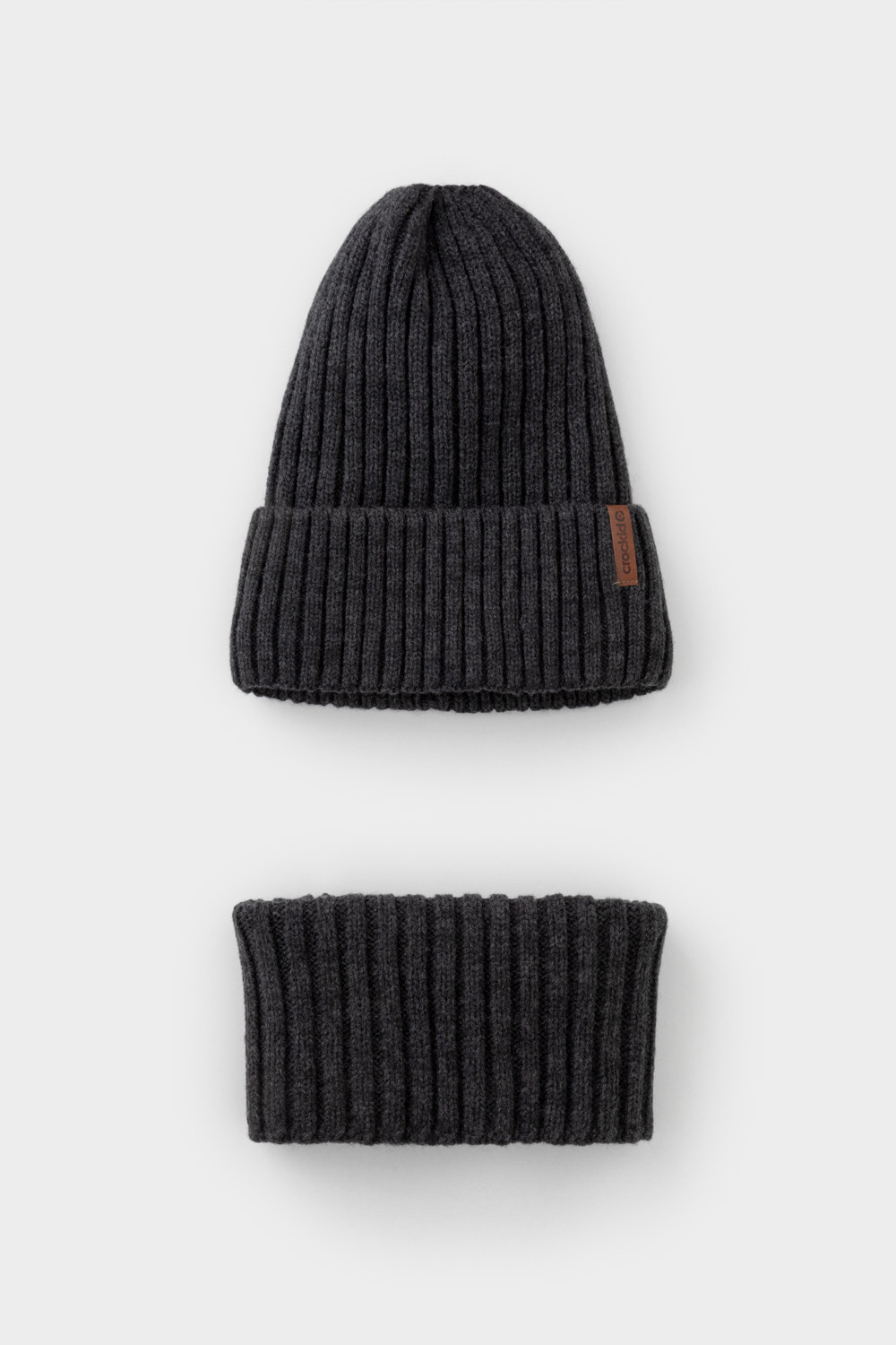 Комплект зимний детский: шапка и снуд из полушерсти. Тёплая вязаная шапка с отворотом на подкладе из флиса. Украшена нашивкой из искусственной кожи. Узкий снуд без оборотов вокруг шеи. Изделие сохраняет форму и стойкий цвет после многочисленных стирок.