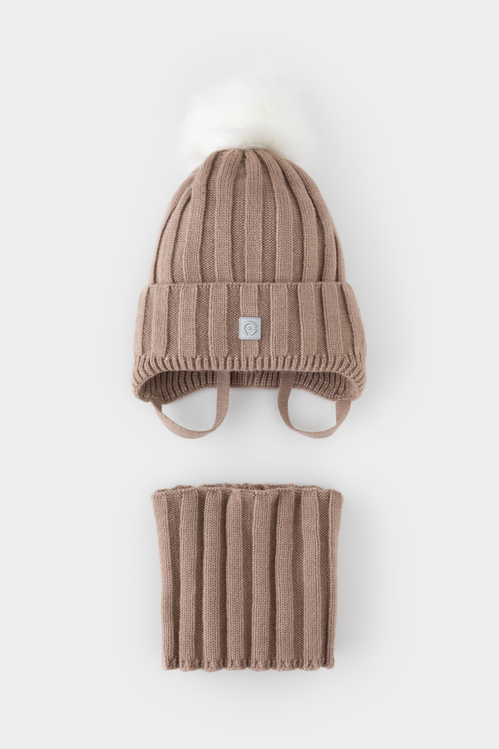 Комплект детский: шапка и снуд из полушерсти. Шапка на завязках с синтепоновым утеплителем. Подклад из натурального хлопка. Полностью закрывает голову, уши и шею, защищая ребёнка от холодного воздуха и ветра. На макушке помпон. Снуд с отворотом. Изделие сохраняет форму и стойкий цвет после многочисленных стирок.