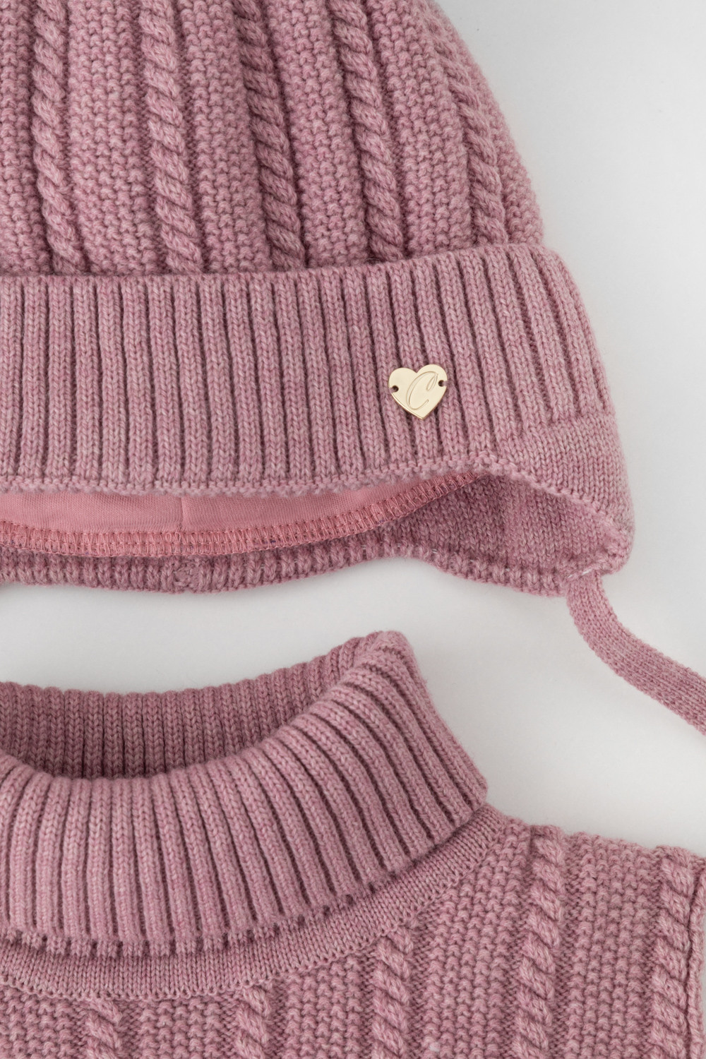 шапка: 70% акрил, 30% шерсть; подклад: 100% хлопок; утеплитель: 100% полиэстер; манишка: 70% акрил, 30% шерсть