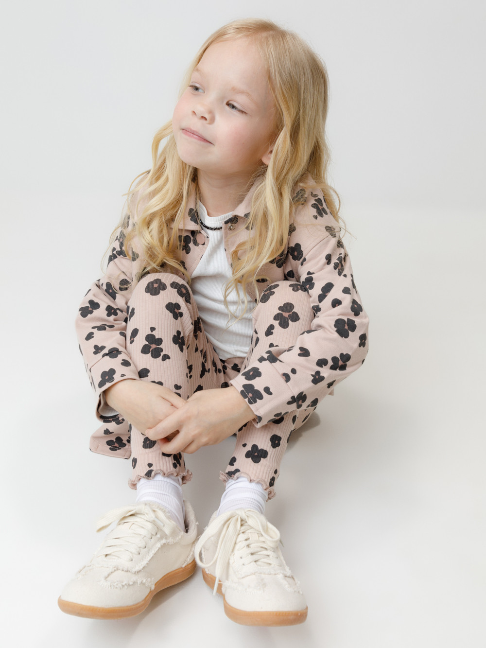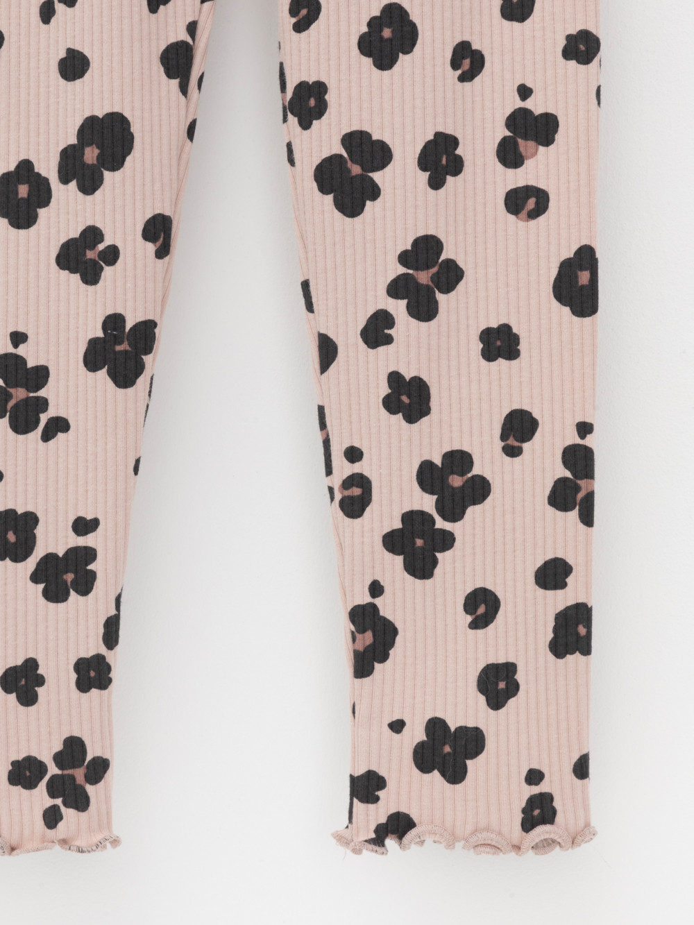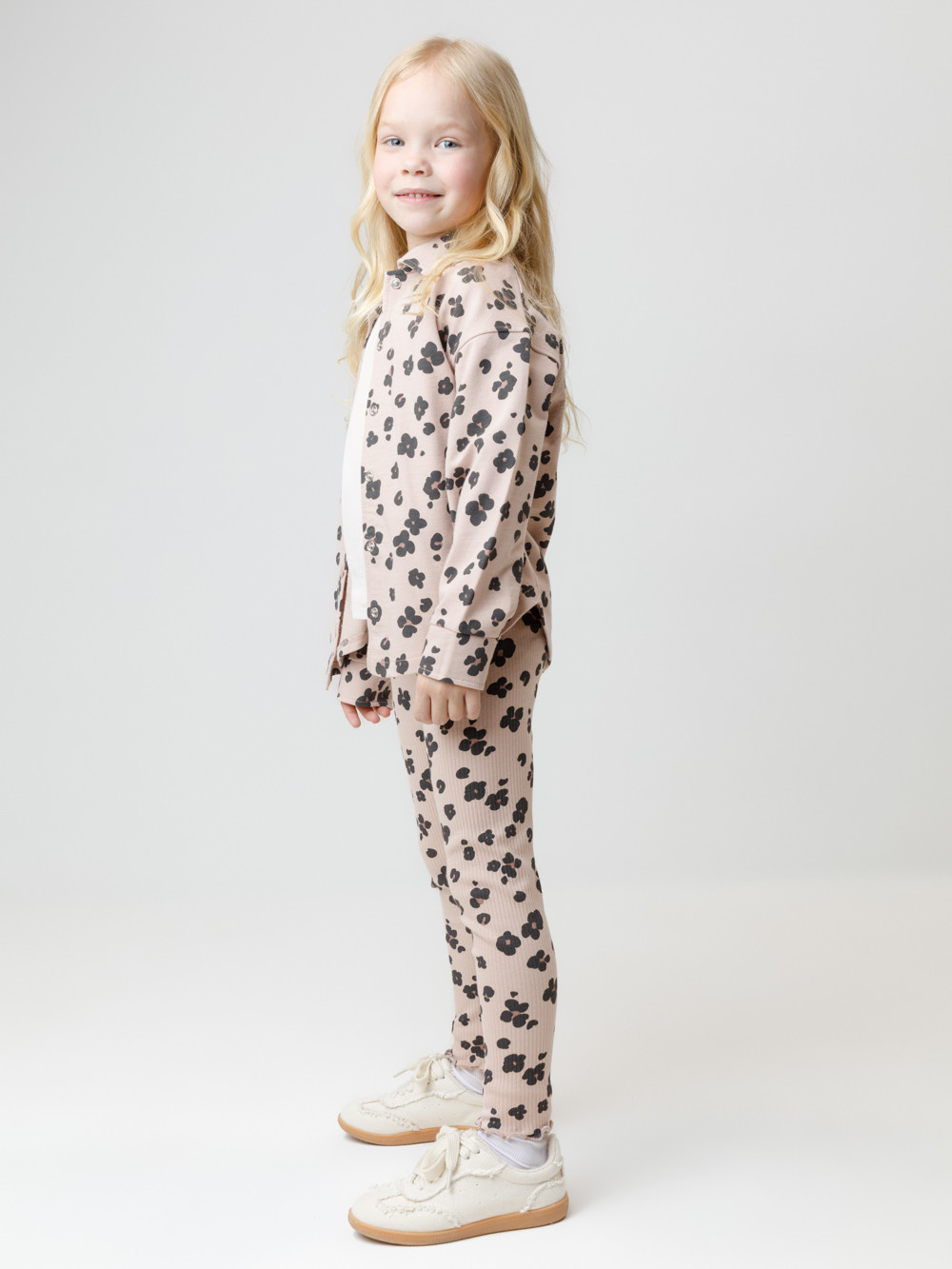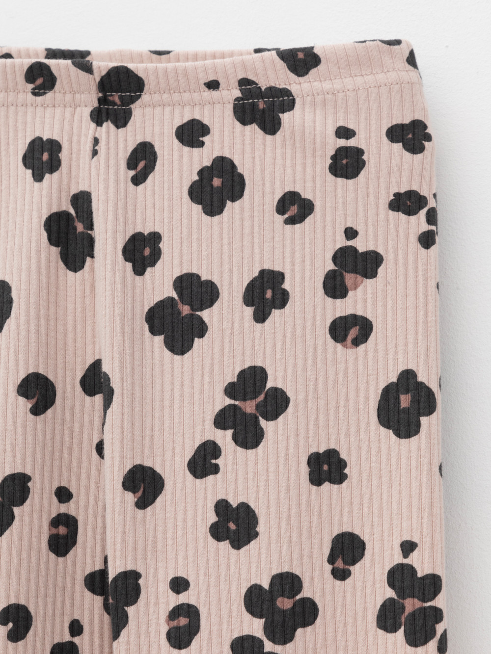 Лосины для девочки из эластичного трикотажа в рубчик. Оригинальный рисунок выполнен из стойких текстильных гипоаллергенных красителей. Изделие сохраняет цвет и форму после многократных стирок. Все трикотажные полотна производятся в соответствии с нормами швейцарского сертификата ЭкоТекс.