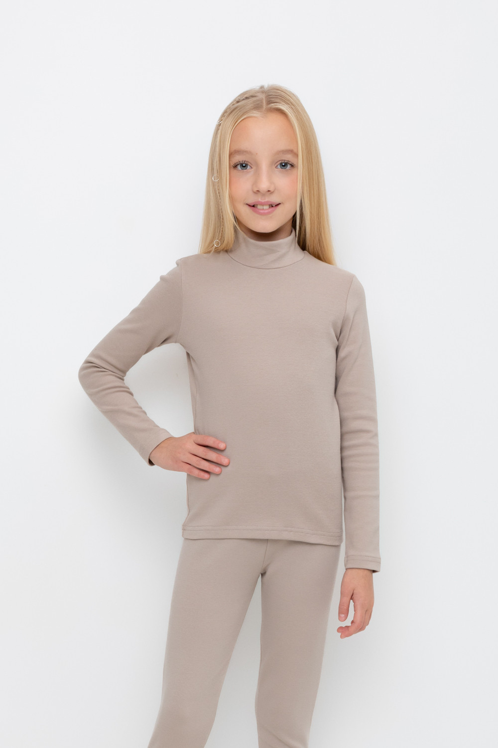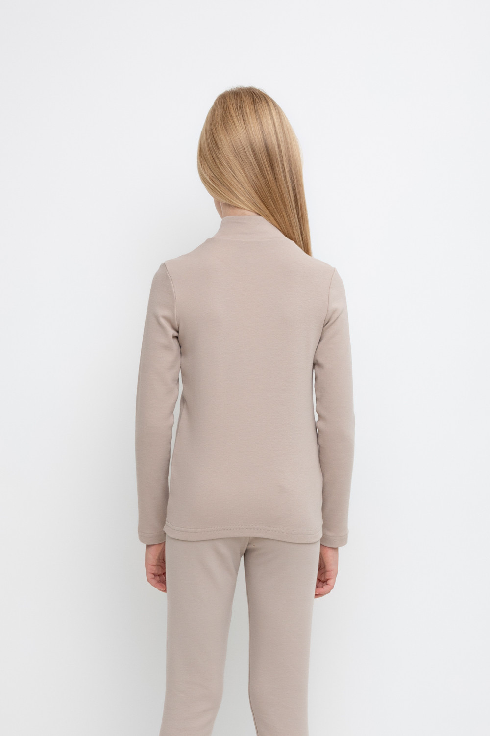 Однотонная водолазка с высоким воротником-стойкой и длинными рукавами. Выполнена из высококачественной эластичной рибаны с начёсом. Эластан в составе позволяет изделию быть более эластичным и дольше сохранять форму. Воротник защищает горло от прохладного воздуха.