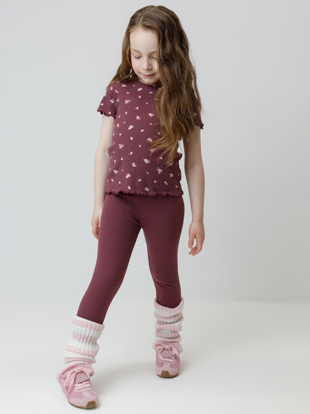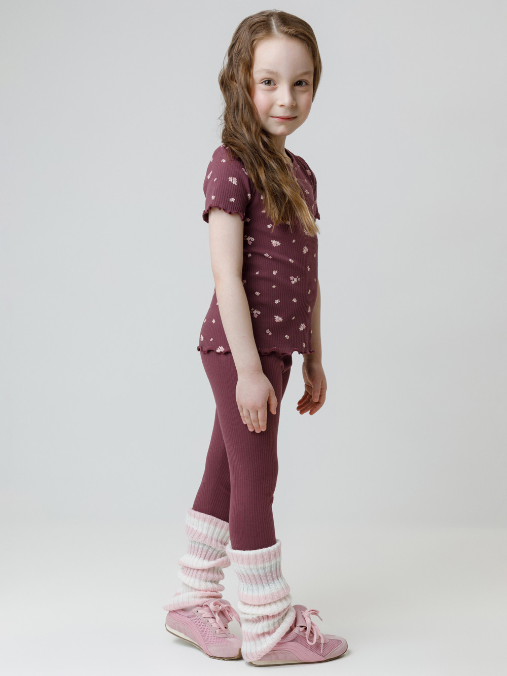 Лосины в рубчик из эластичного трикотажа для девочки. Изделие сохраняет цвет и форму после многократных стирок. Все трикотажные полотна производятся в соответствии с нормами швейцарского сертификата ЭкоТекс.