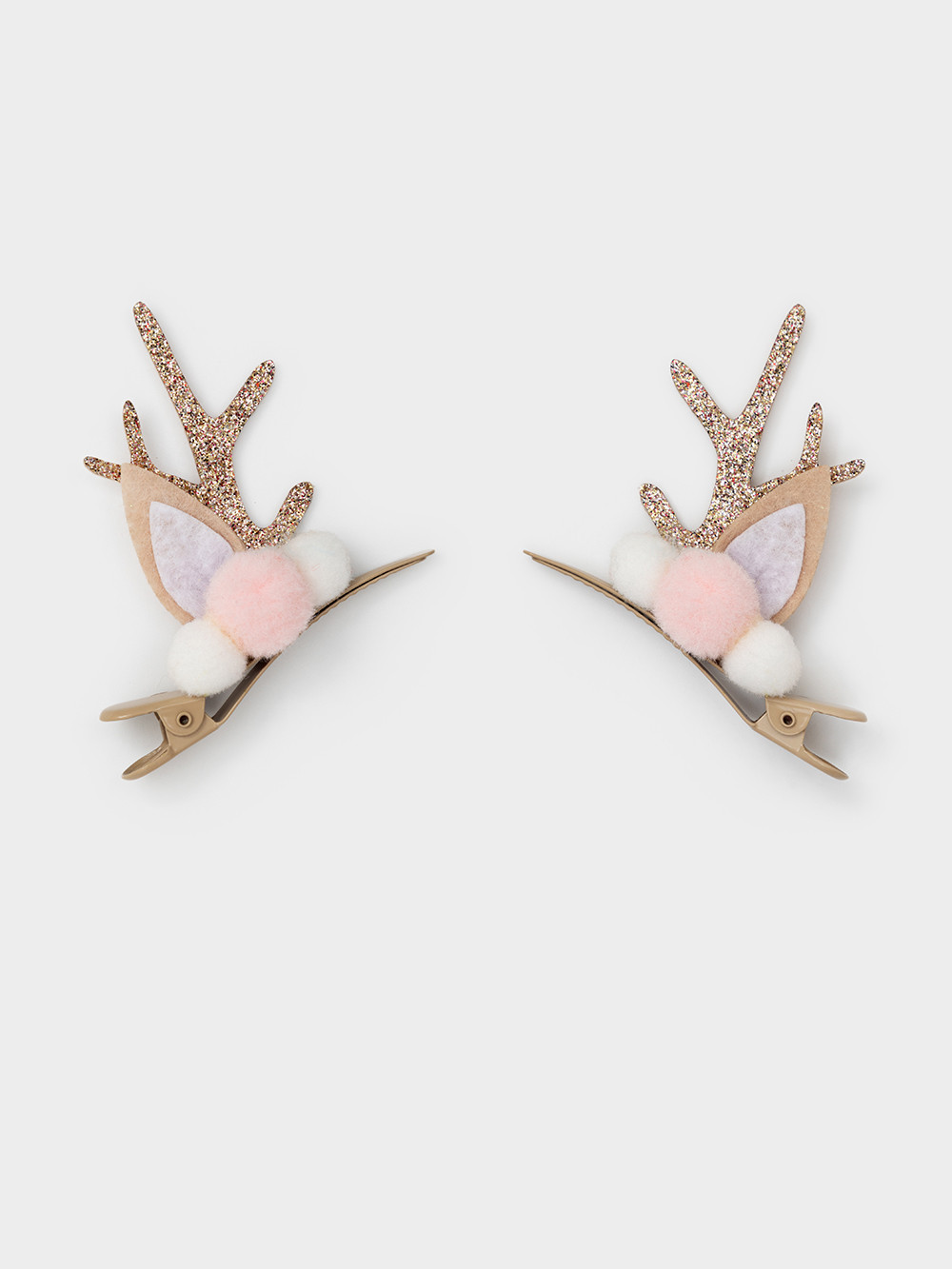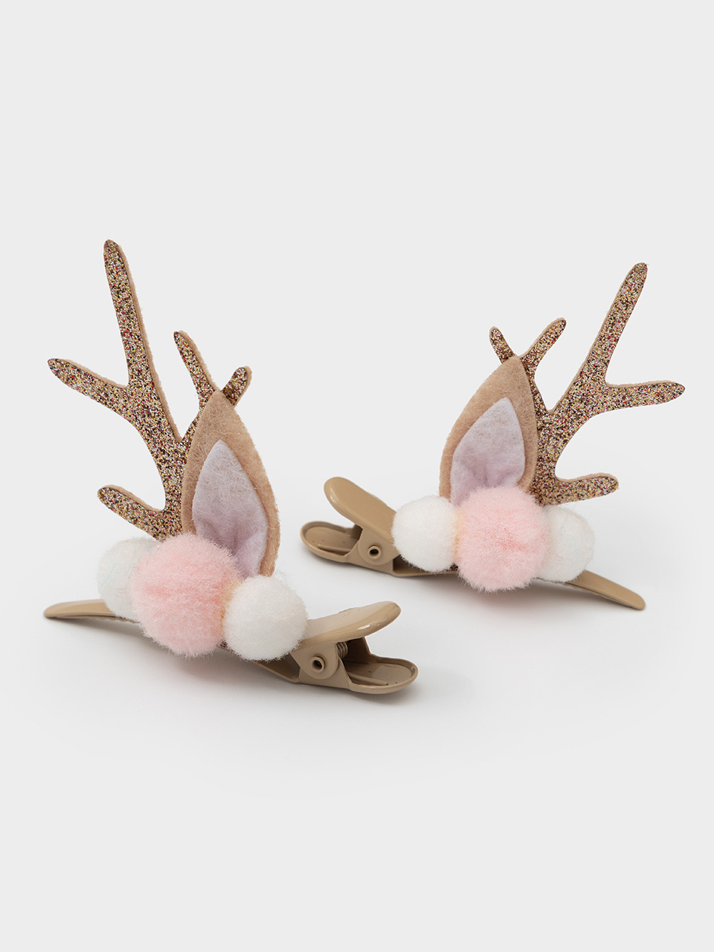 Детские новогодние заколки для волос с украшением из текстиля и помпонов в форме оленьих ушек и рожек. Отлично подойдут в качестве дополнения к подарку на Новый год и Рождество, а так же легко дополнят праздничный образ для утренника или для фотосессии. Предназначены для детей старше 3-х лет, содержат мелкие детали. В наборе 2 штуки.