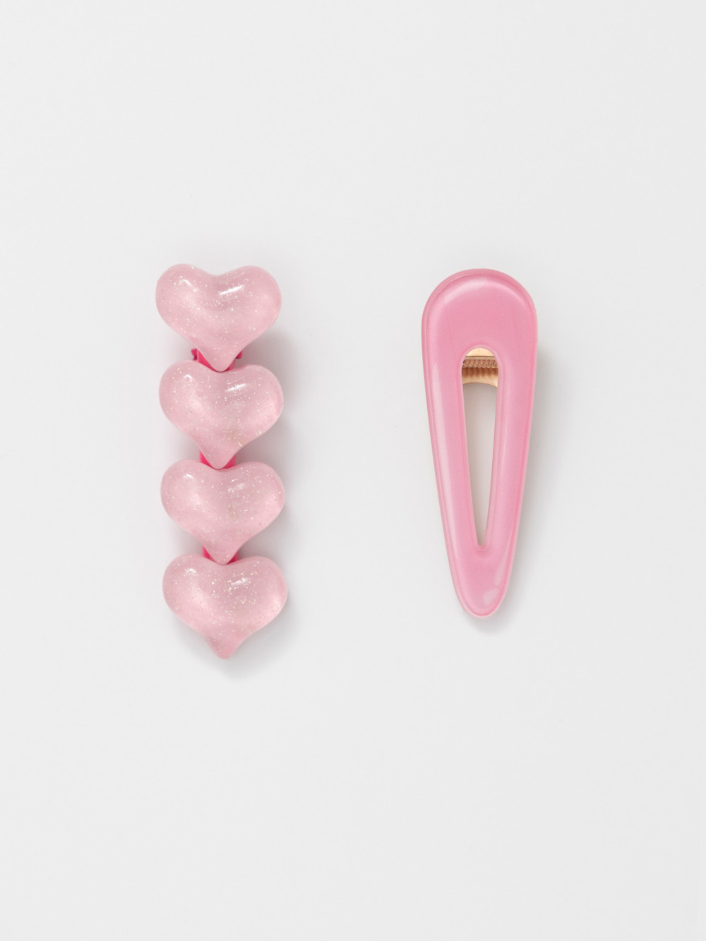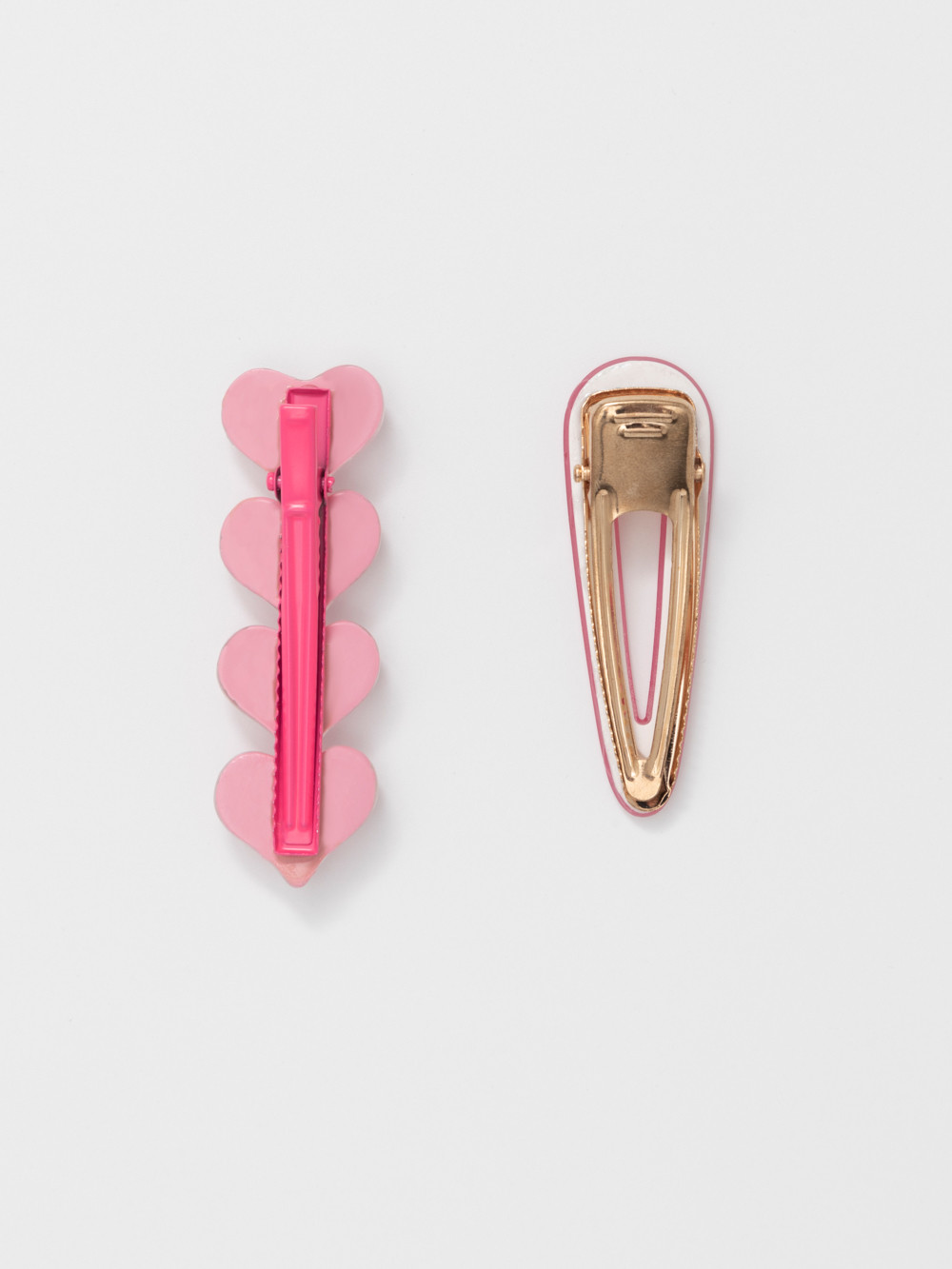 Детские заколки-крокодильчики для волос с украшением из акрила в форме сердечек. Плотно держат волосы и не соскальзывают. Предназначены для детей старше 3-х лет, содержат мелкие детали. В наборе 2 штуки.