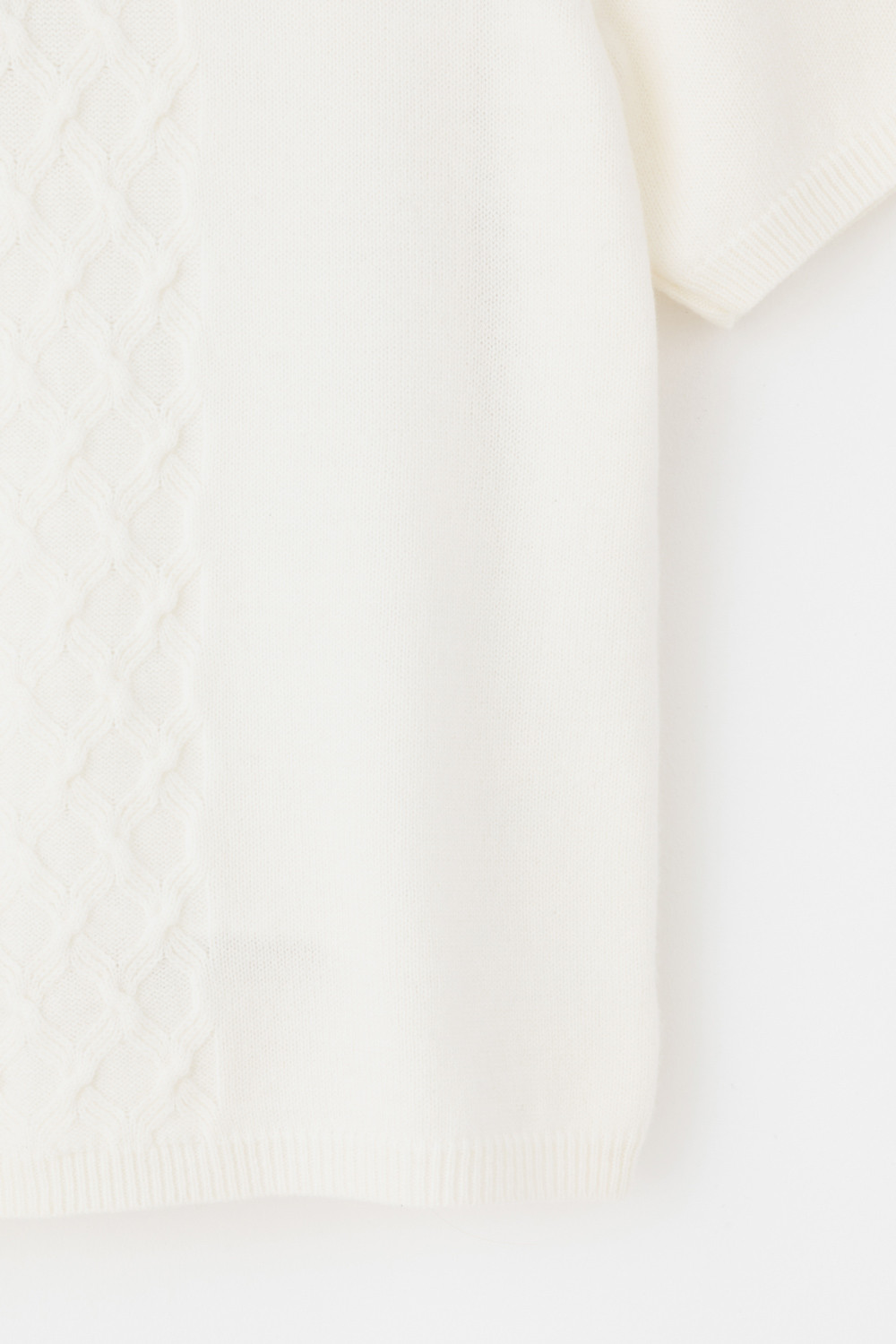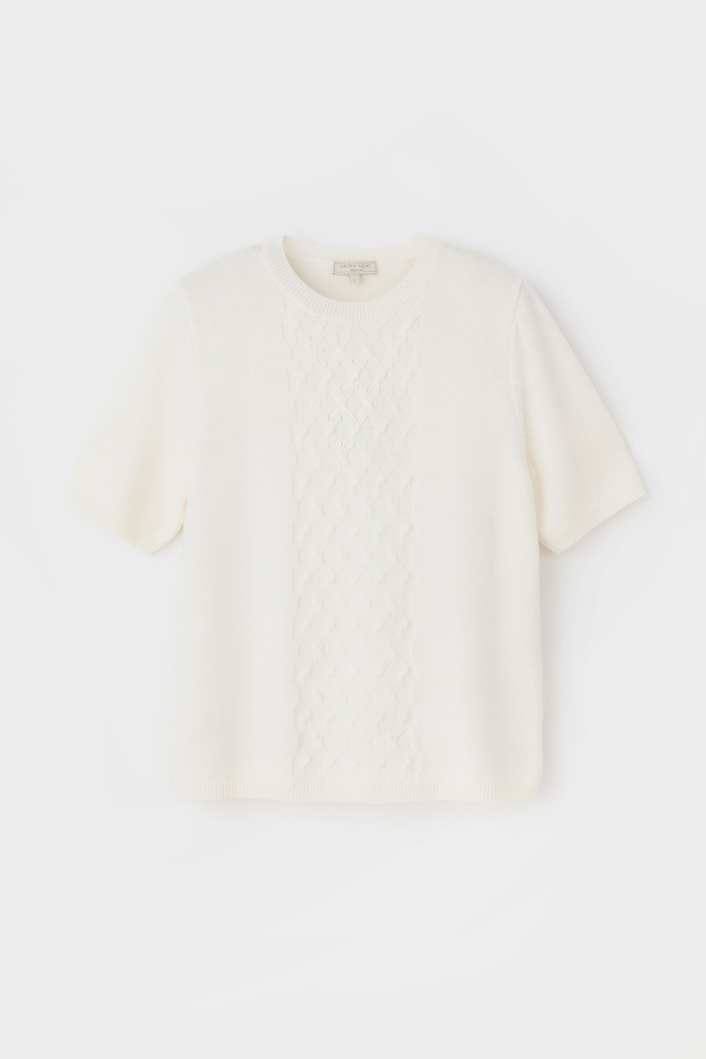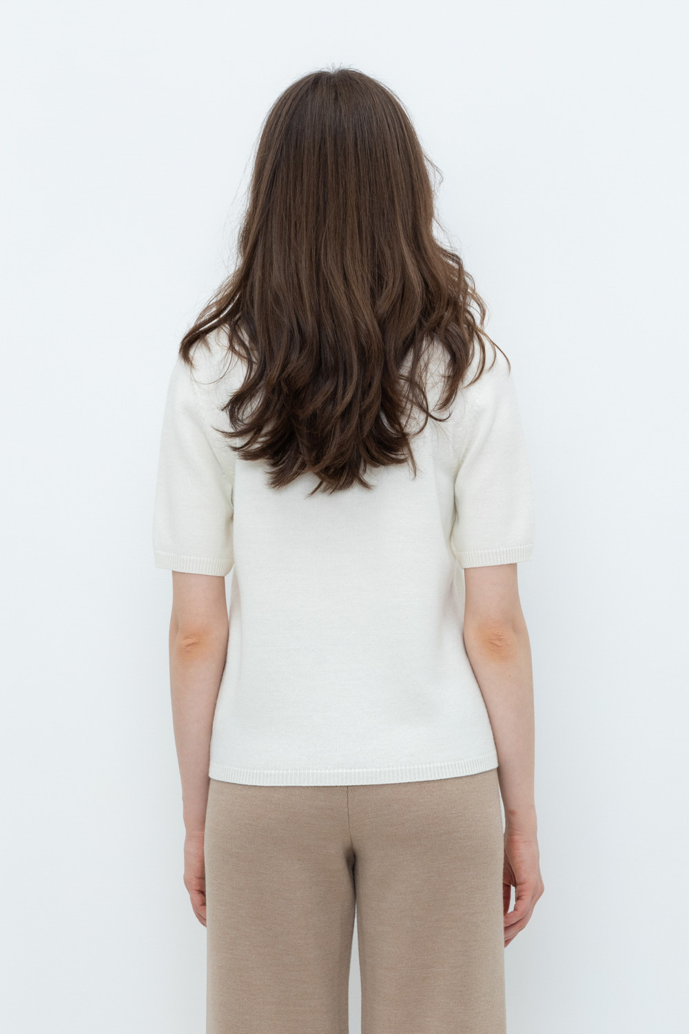 Джемпер с красивым вывязанным узором в стиле прямой футболки с короткими рукавами из мягкой полушерстяной пряжи. Прямой силуэт, стандартная длина. Шерсть в составе сохраняет тепло, а благодаря волокнам акрила изделие мягкое и дольше сохраняет форму.