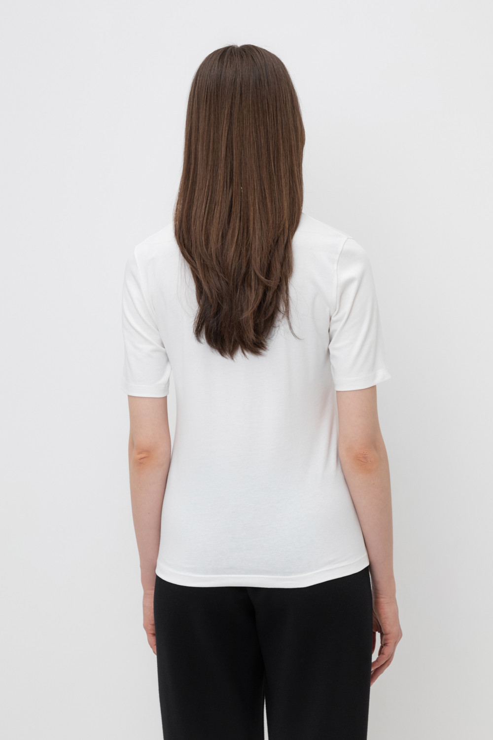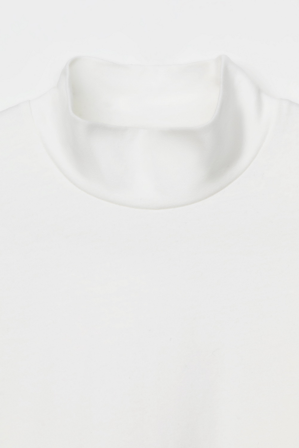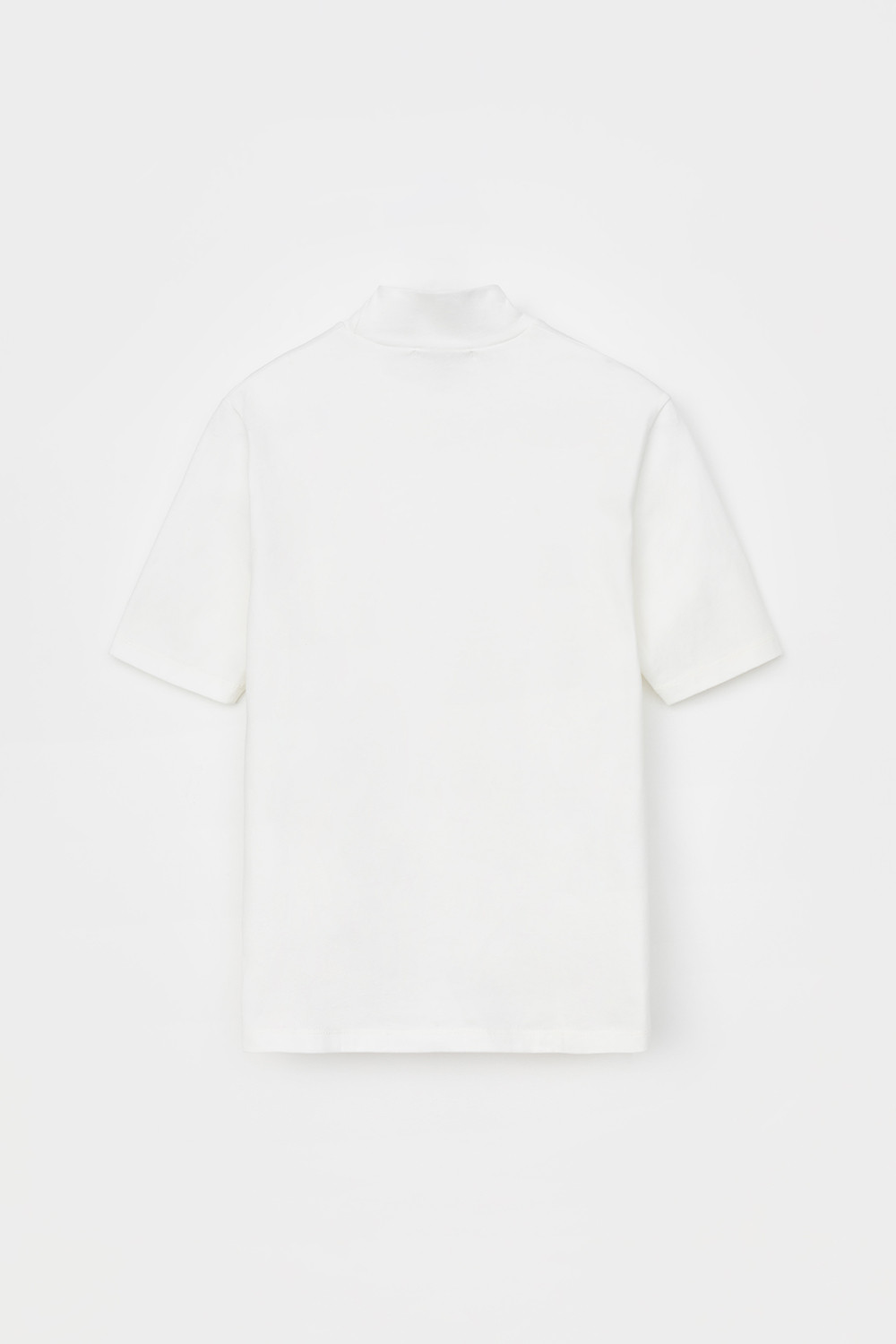 Базовый джемпер с короткими рукавами и воротником-стойкой из плотного однотонного трикотажа супрем с добавлением спандекса.
