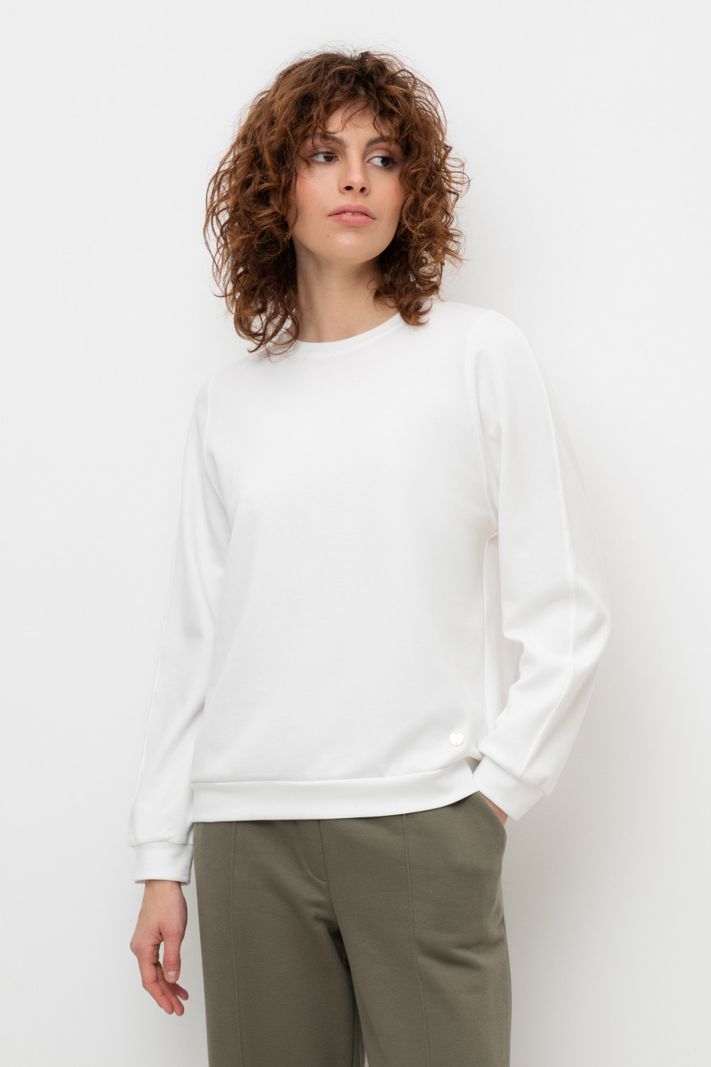 Базовый джемпер с объмными рукавами из плотного трикотажа интрелок.