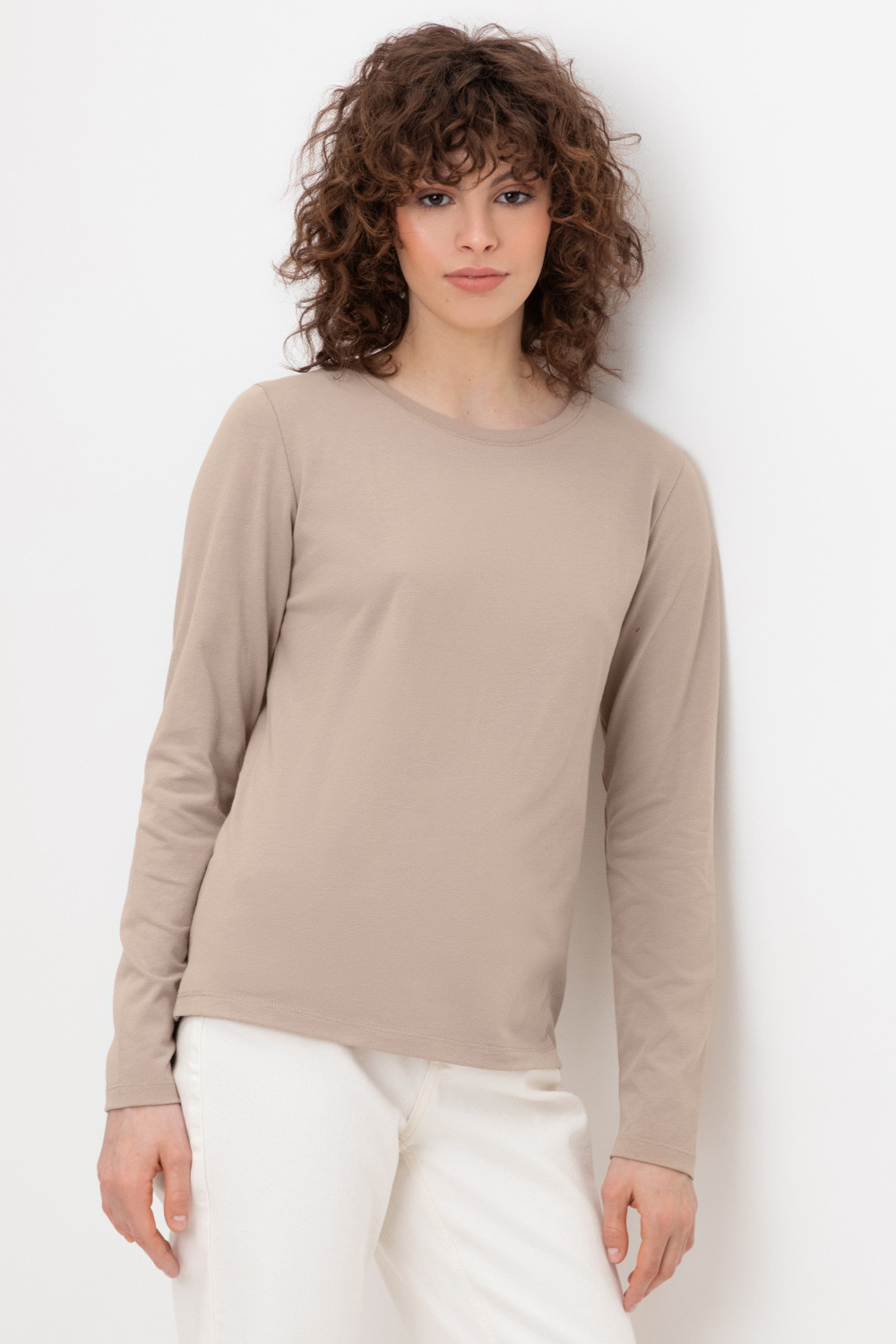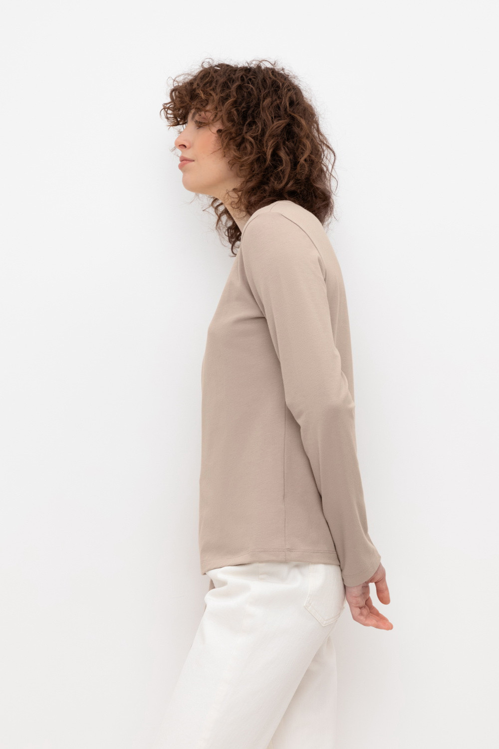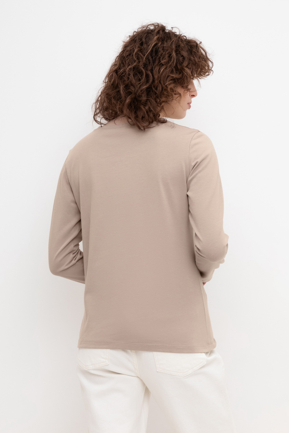 Базовый лонгслив из плотного однотонного трикотажа супрем с добавлением спандекса.