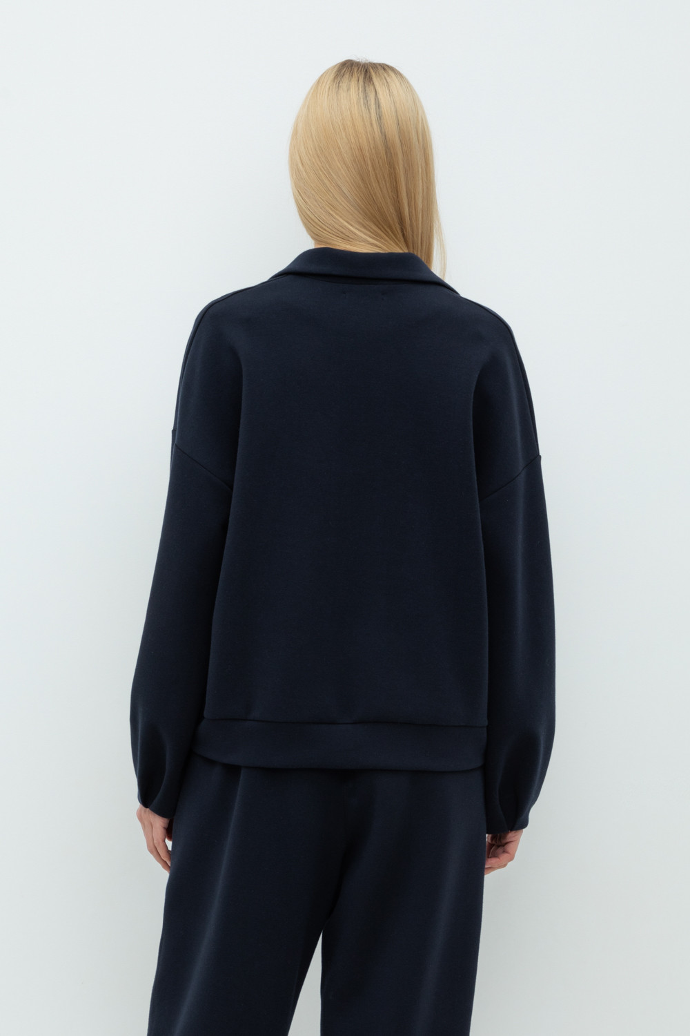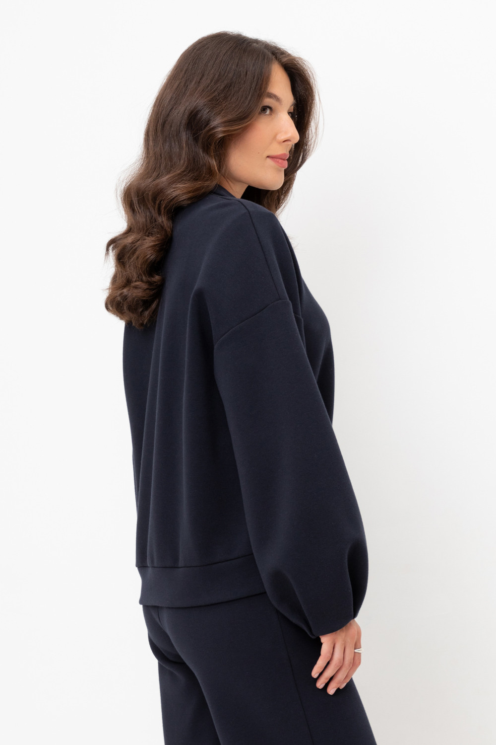 Джемпер с объемными рукавами из плотного трикотажа интерлок. Спущенное плечо и прямой силуэт придают изделию свободный объем.