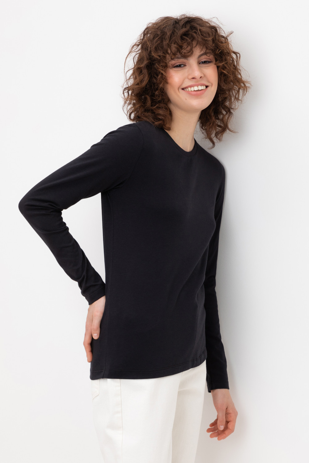 Базовый лонгслив из плотного однотонного трикотажа супрем с добавлением спандекса.