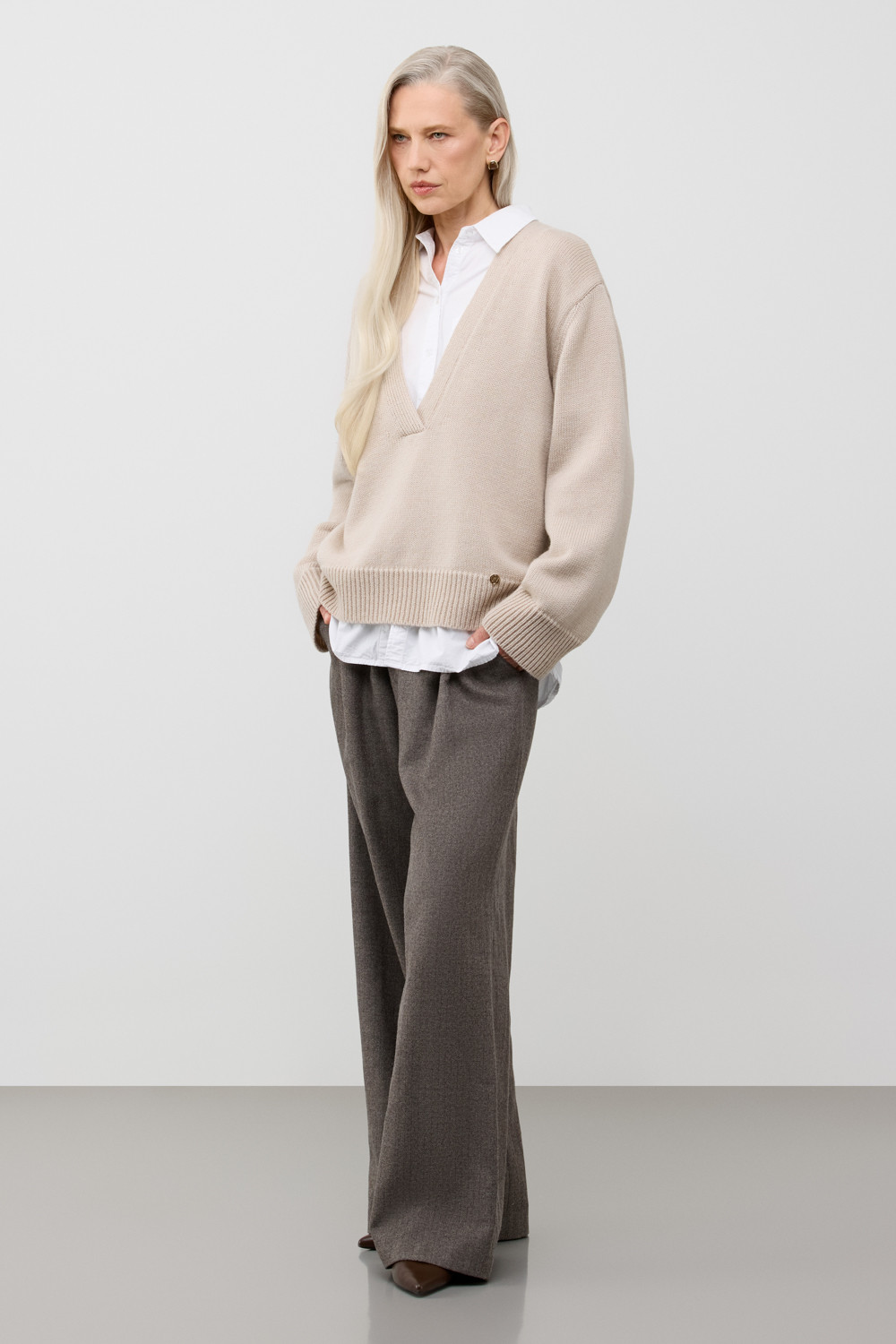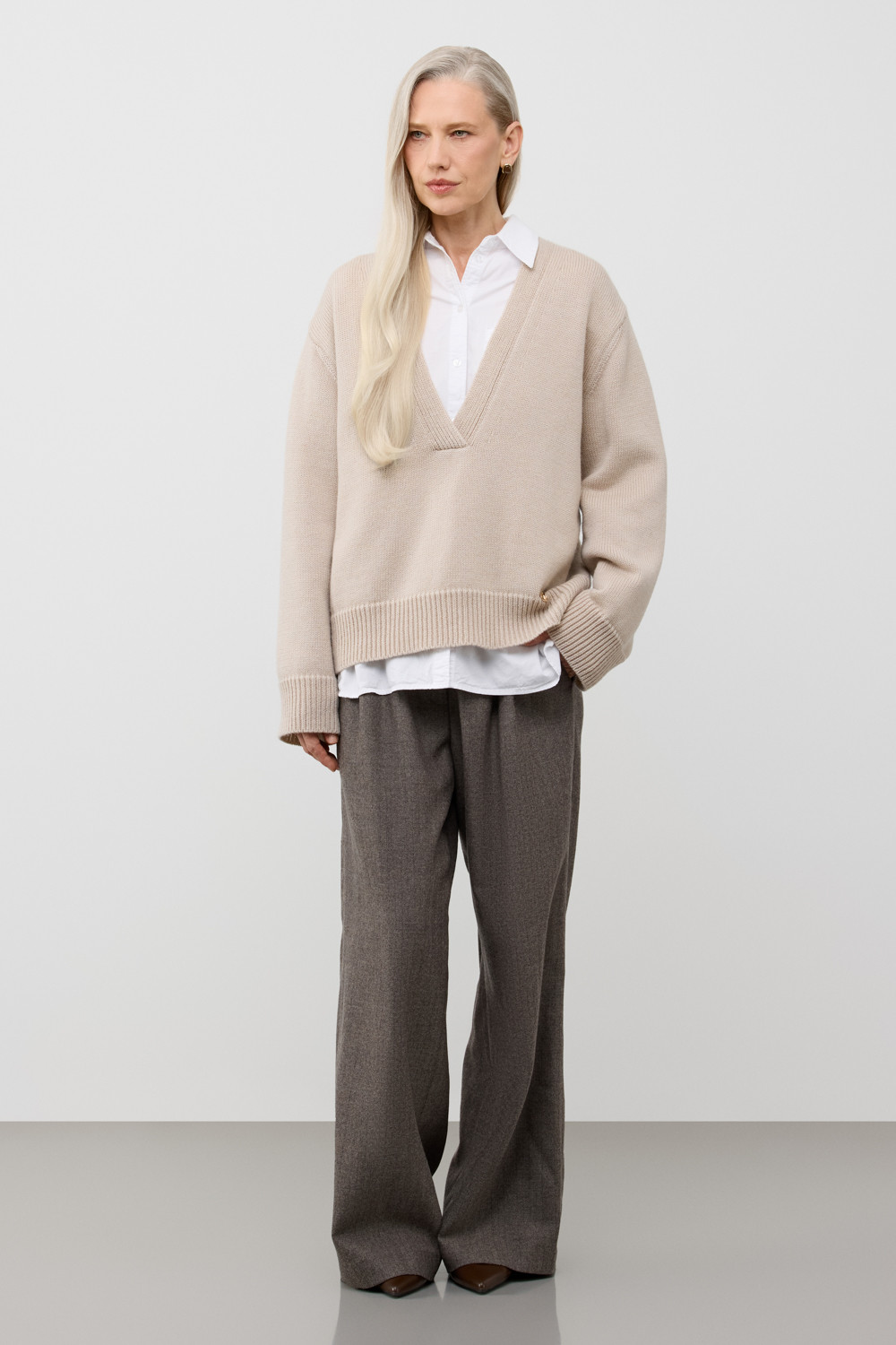 Мягкий вязаный джемпер из премиальной пряжи, созданный с использованием инновационной технологии смешанного волокна. Деликатное сочетание шерсти и акрила обеспечивает непревзойденный комфорт: изделие нежно облегает фигуру, гарантирует мягкость прикосновения и сохраняет безупречную форму.