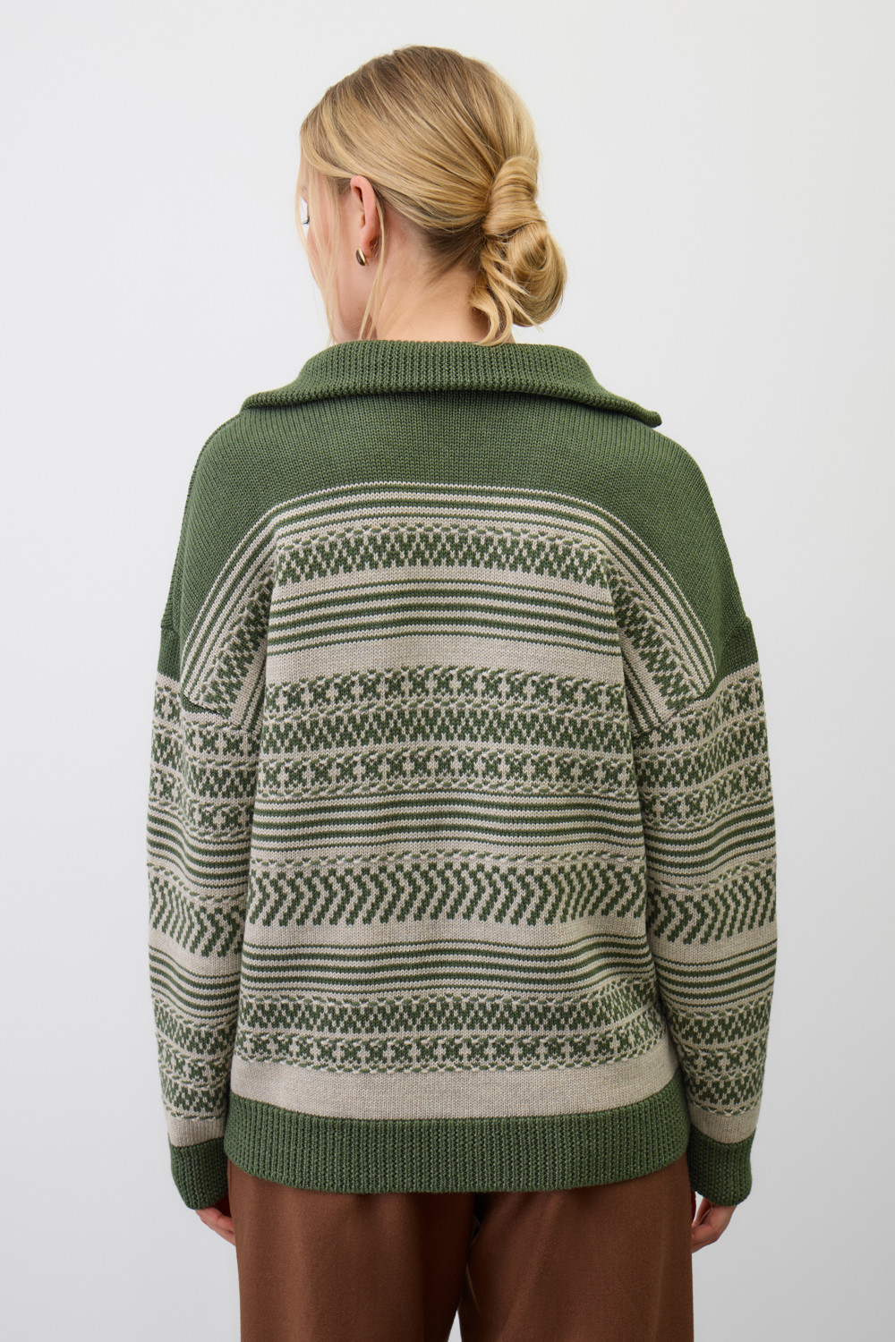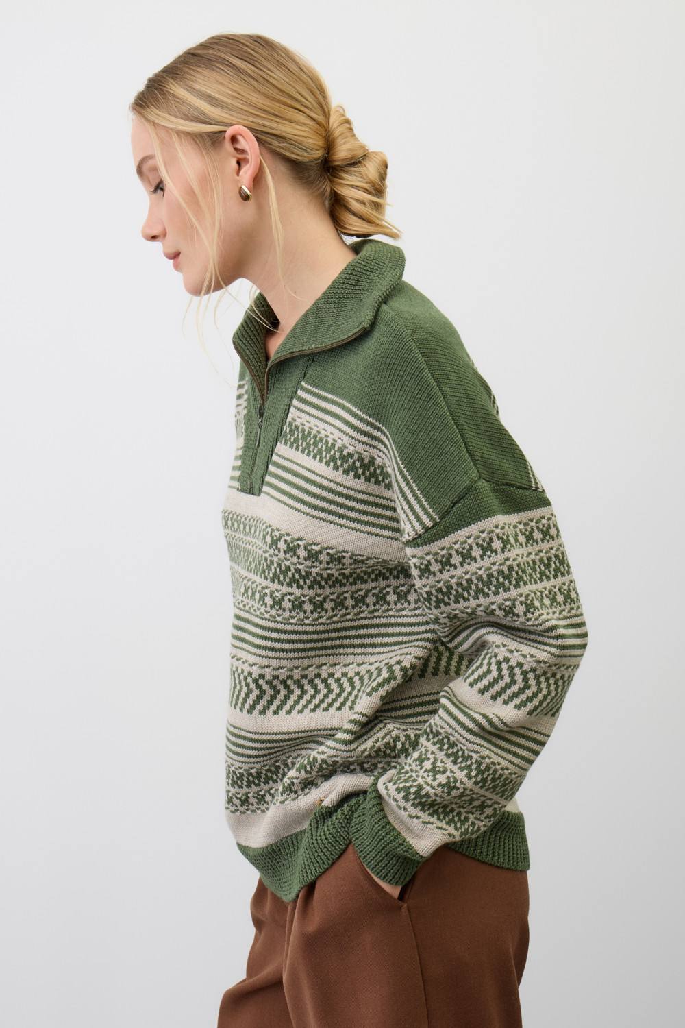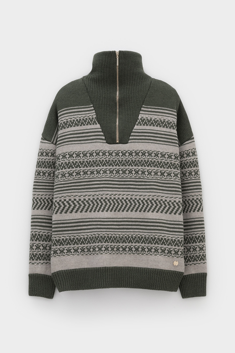 Изысканный джемпер в скандинавском стиле создан из высококачественной пряжи с применением передовой технологии смешанных волокон. Тонкое сочетание шерсти и акрила создает непревзойденный комфорт: модель мягко подчеркивает силуэт, обеспечивает нежное прикосновение и сохраняет безупречную посадку. Стильный воротник-стойка с элегантной застежкой-молнией завершает продуманный дизайн.