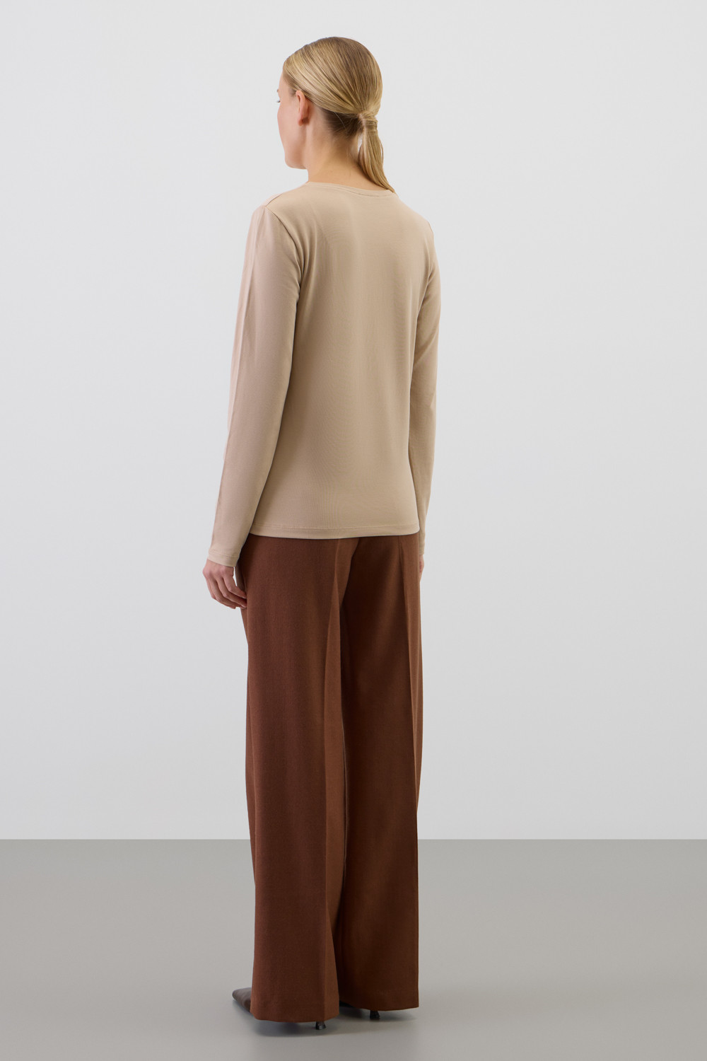 Базовый лонгслив из премиального трикотажа DOUBLE FACE.  Особая обработка ткани придает легкость и шелковистость текстуры. Имеет классический круглый вырез и удобный прямой крой.