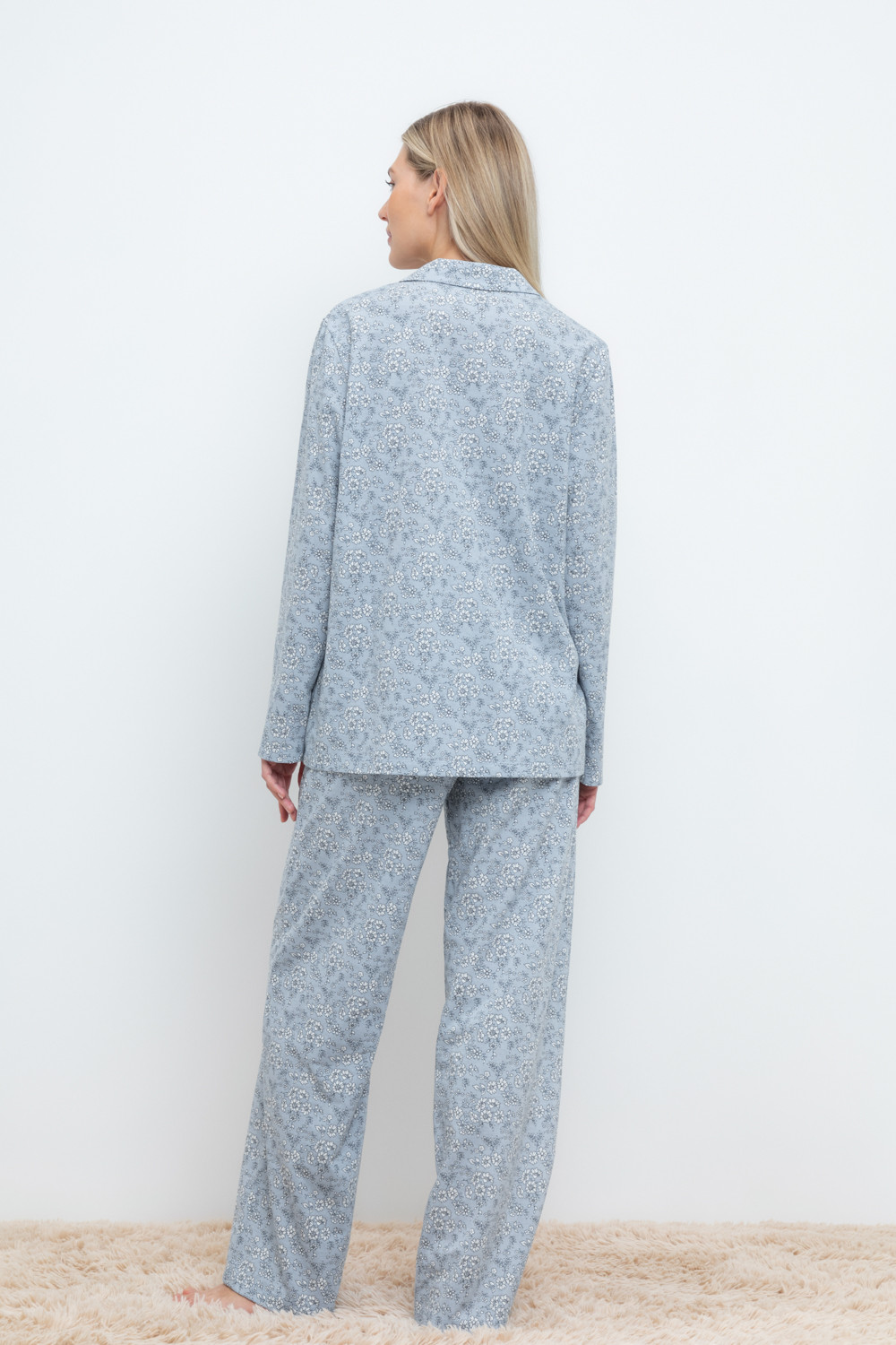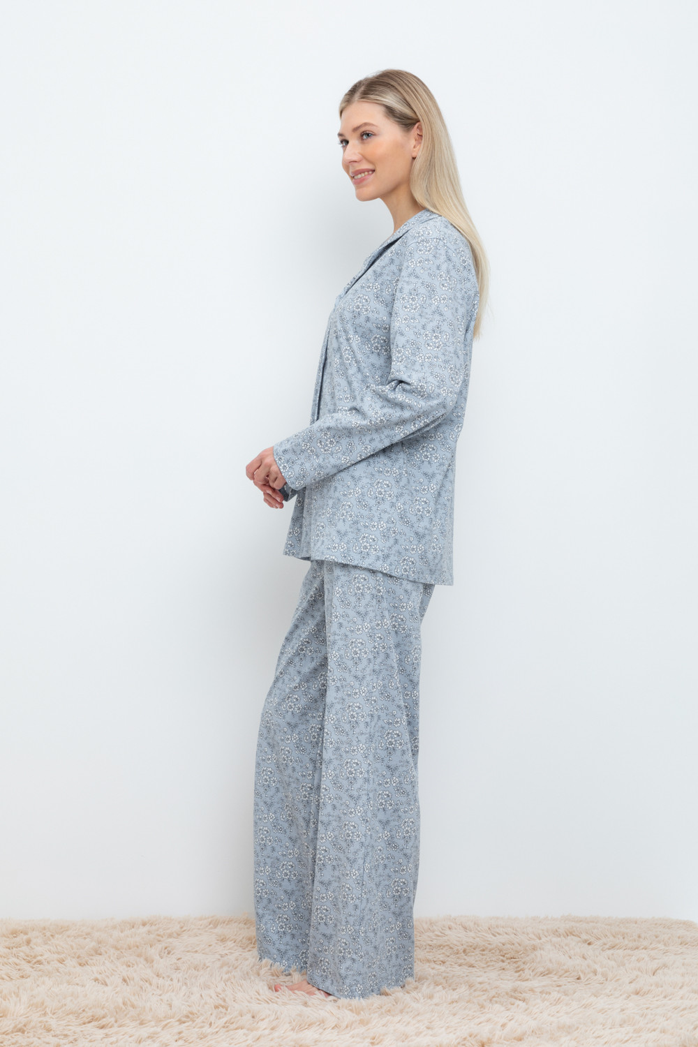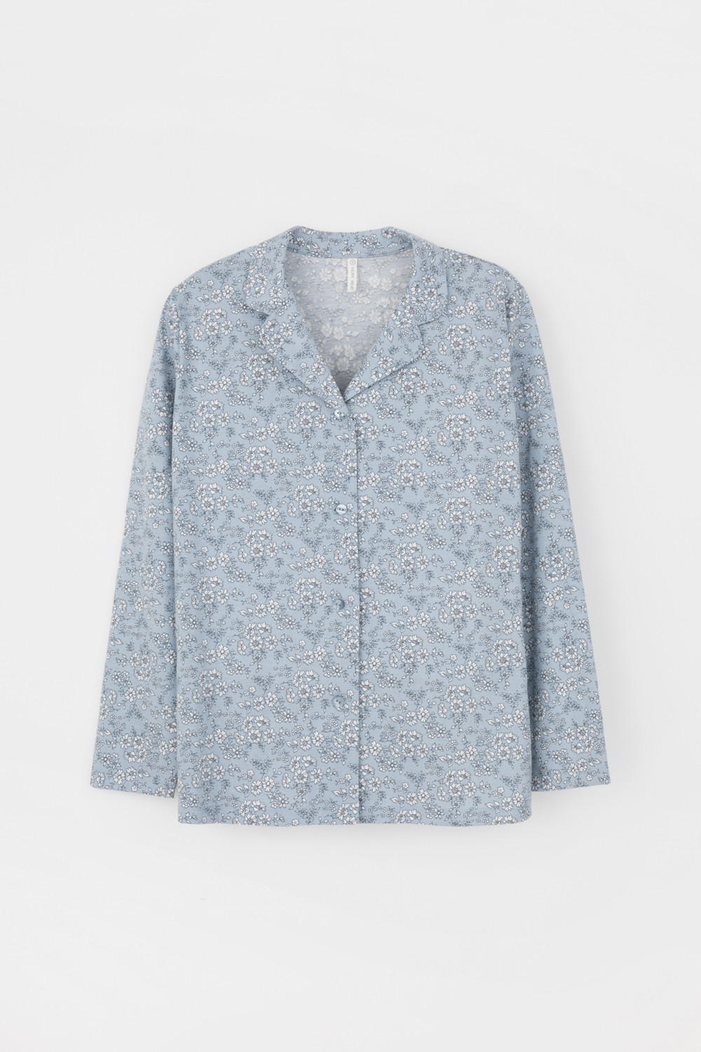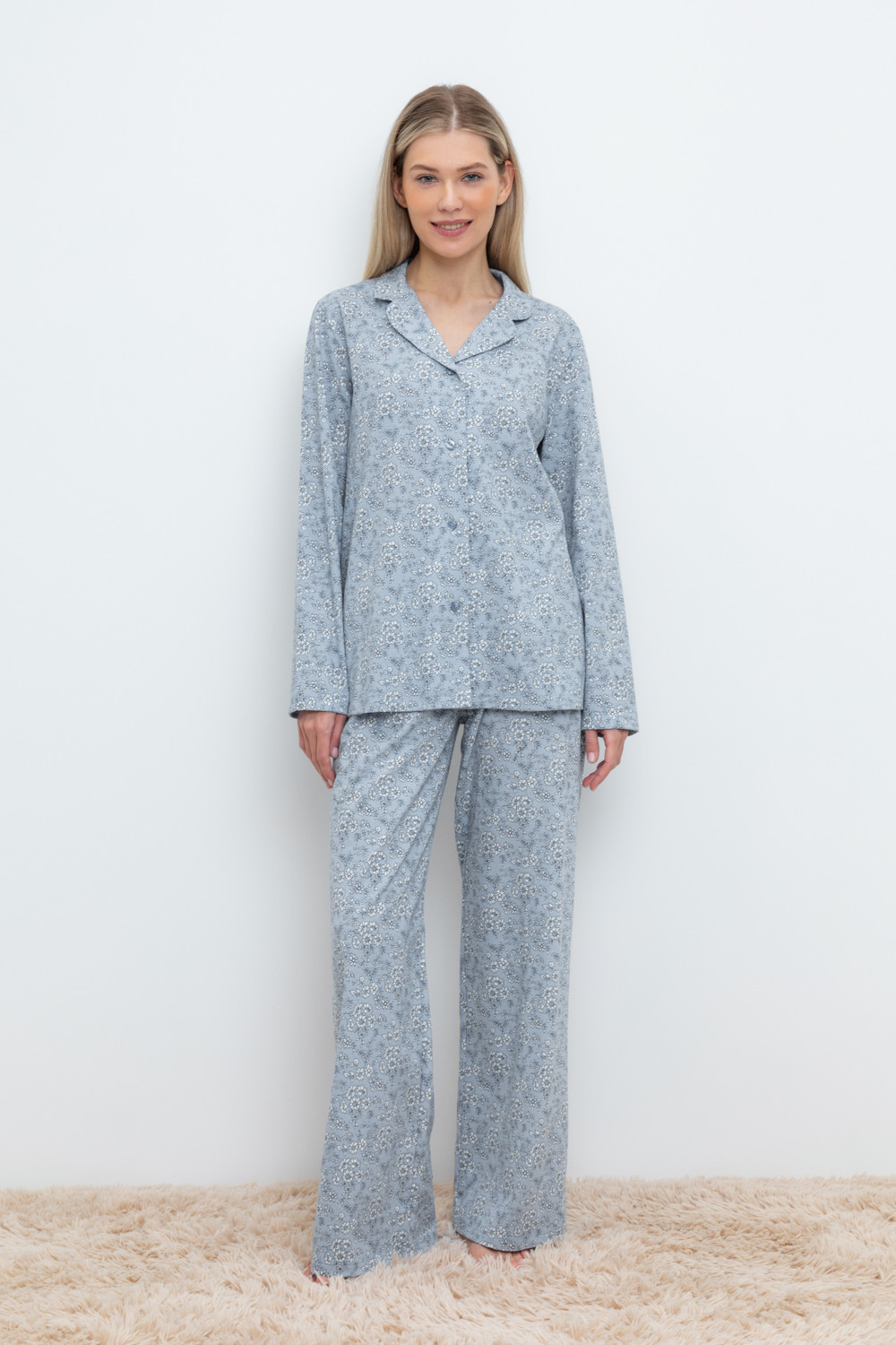 Комплект для комфортного сна и отдыха из набивного трикотажа из 100% натурального хлопка. Рубашка с длинными рукавами на пуговицах. Брюки с мягким поясом на резинке. Гладкий материал приятен к телу, не теряет форму и позволяет коже дышать.