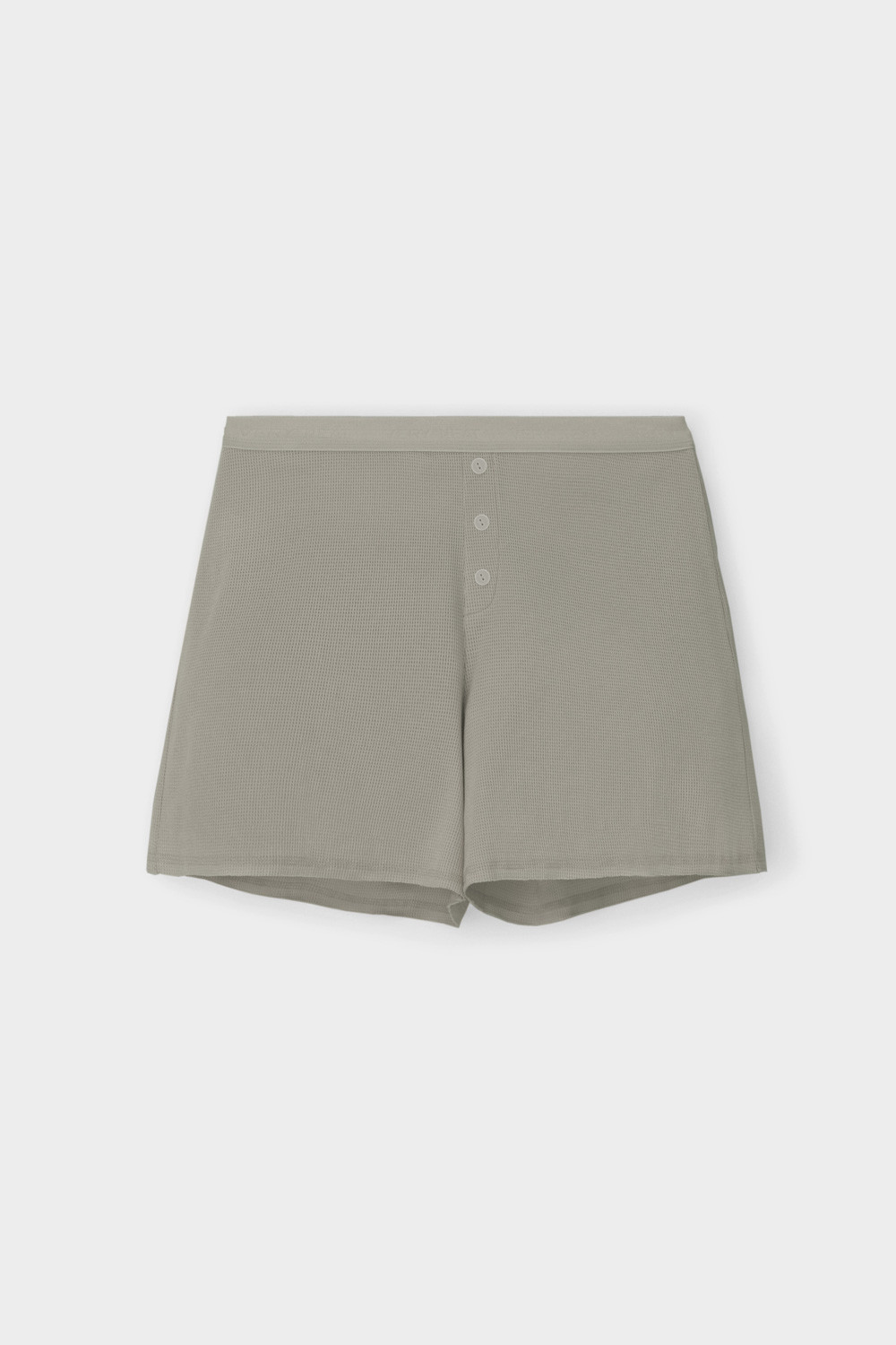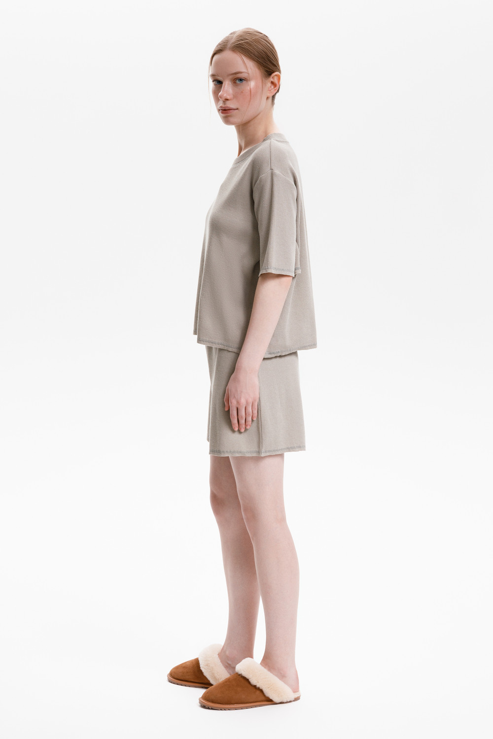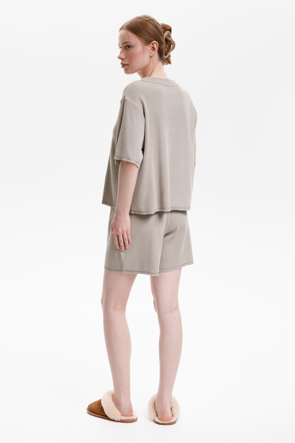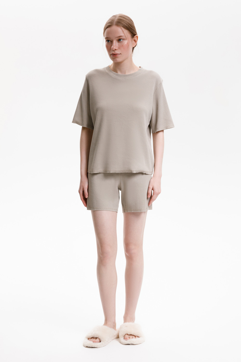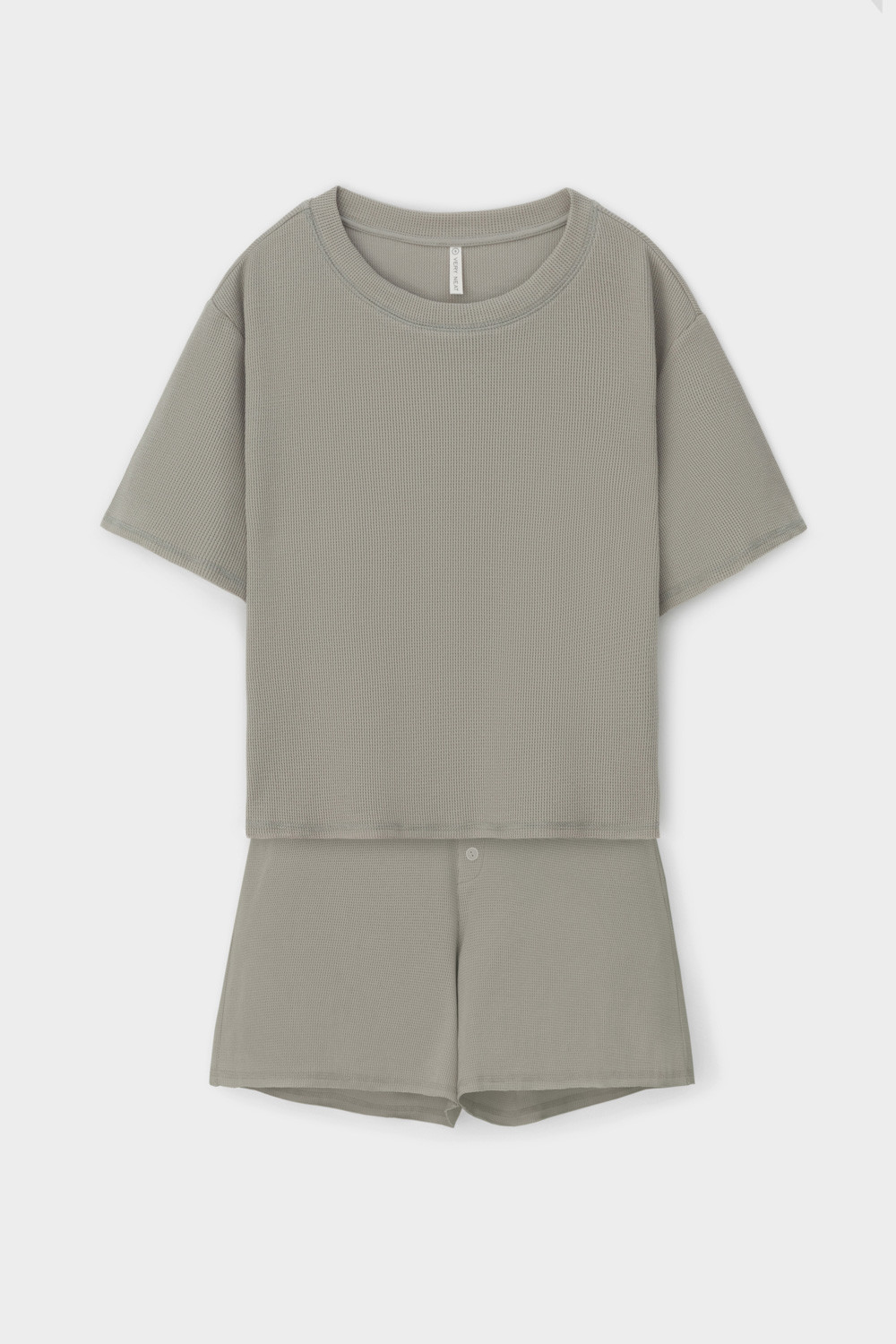 Комплект из объемного трикотажа с добавлением эластичных волокон. Свободный силуэт и мягкий пояс  обеспечат комфорт во время сна и отдыха.