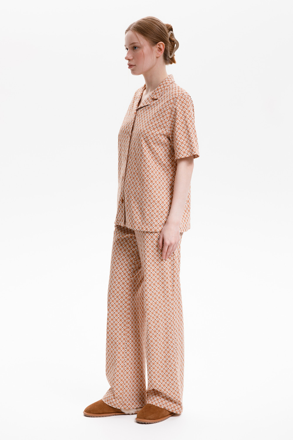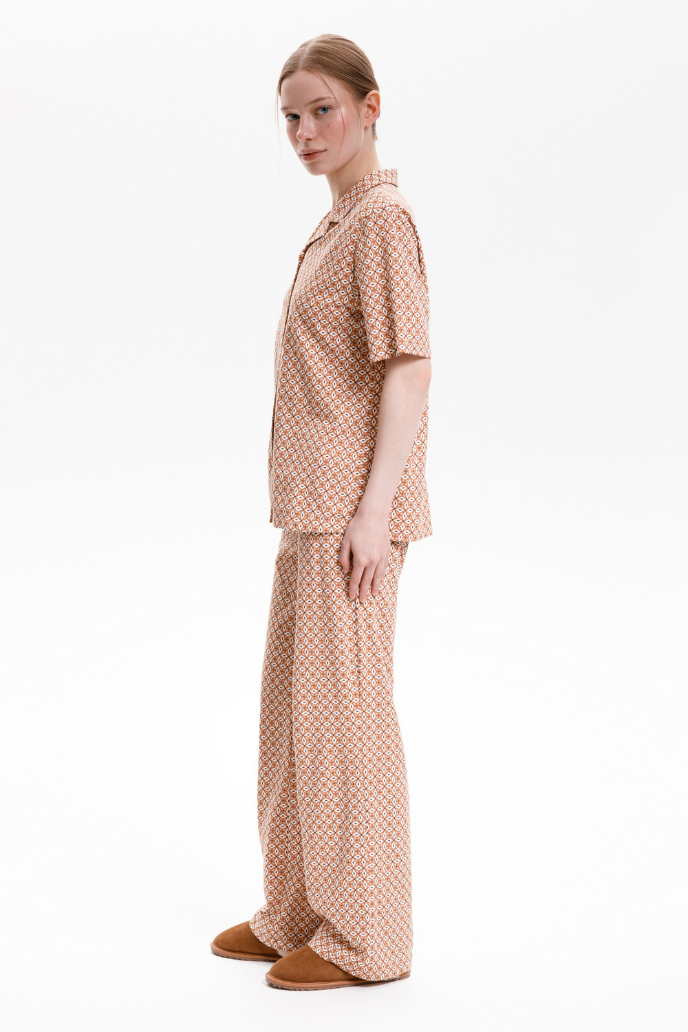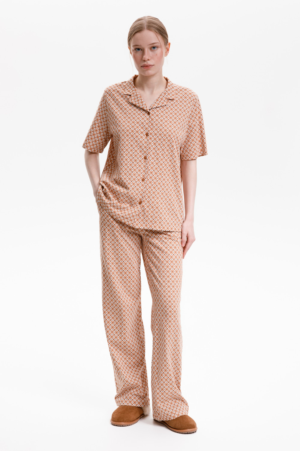 Подарите себе ощущение домашнего уюта с комплектом из высококачественного хлопка. Свободный крой брюк и рубашка идеальной посадки созданы для придания максимального комфорта и практичности.