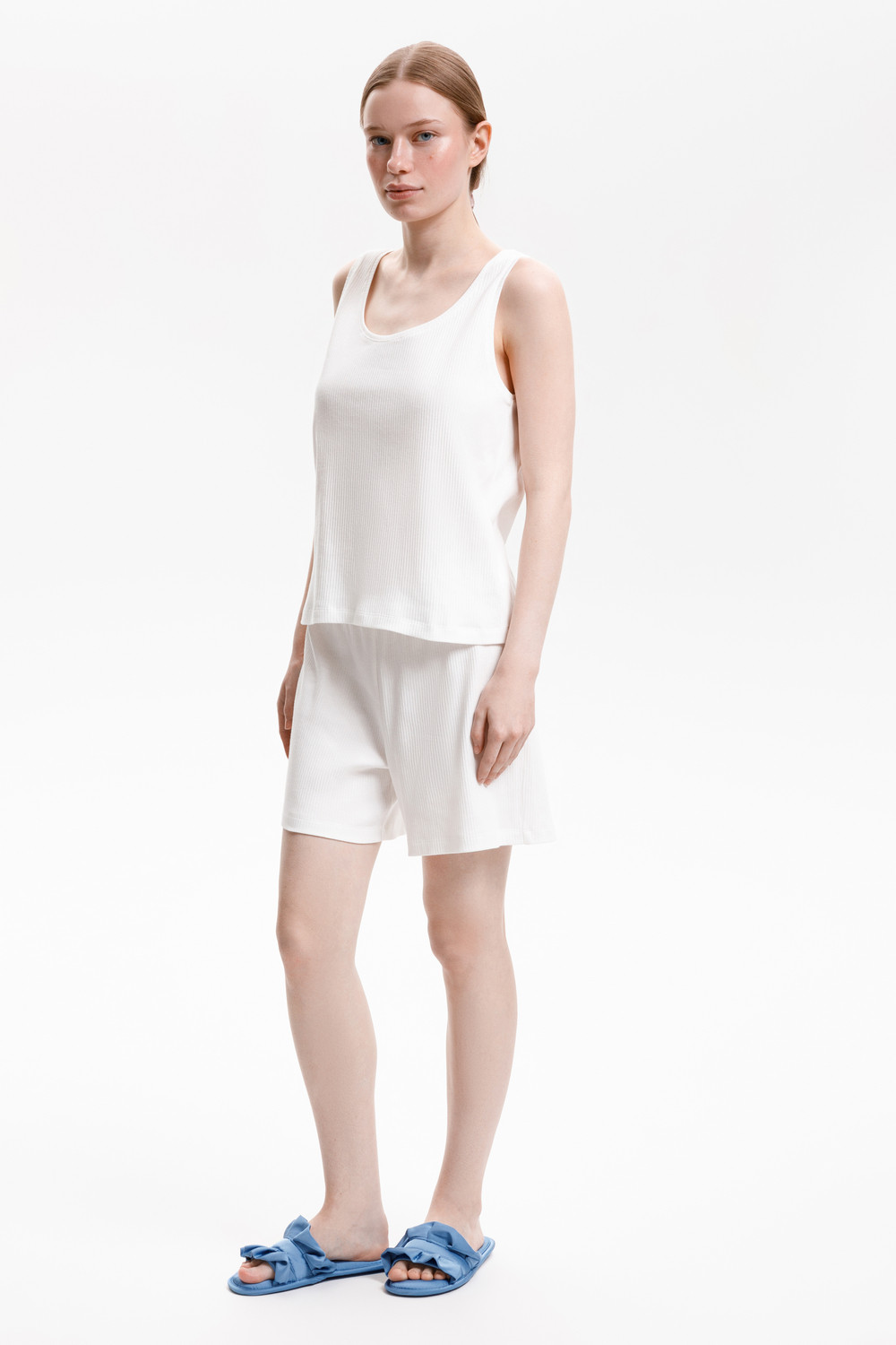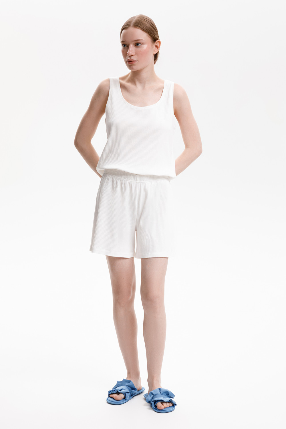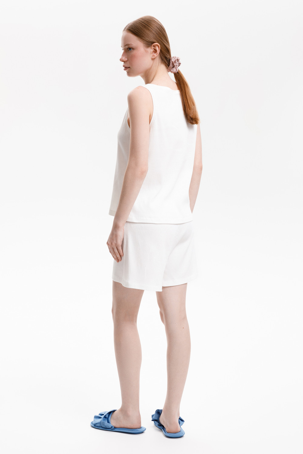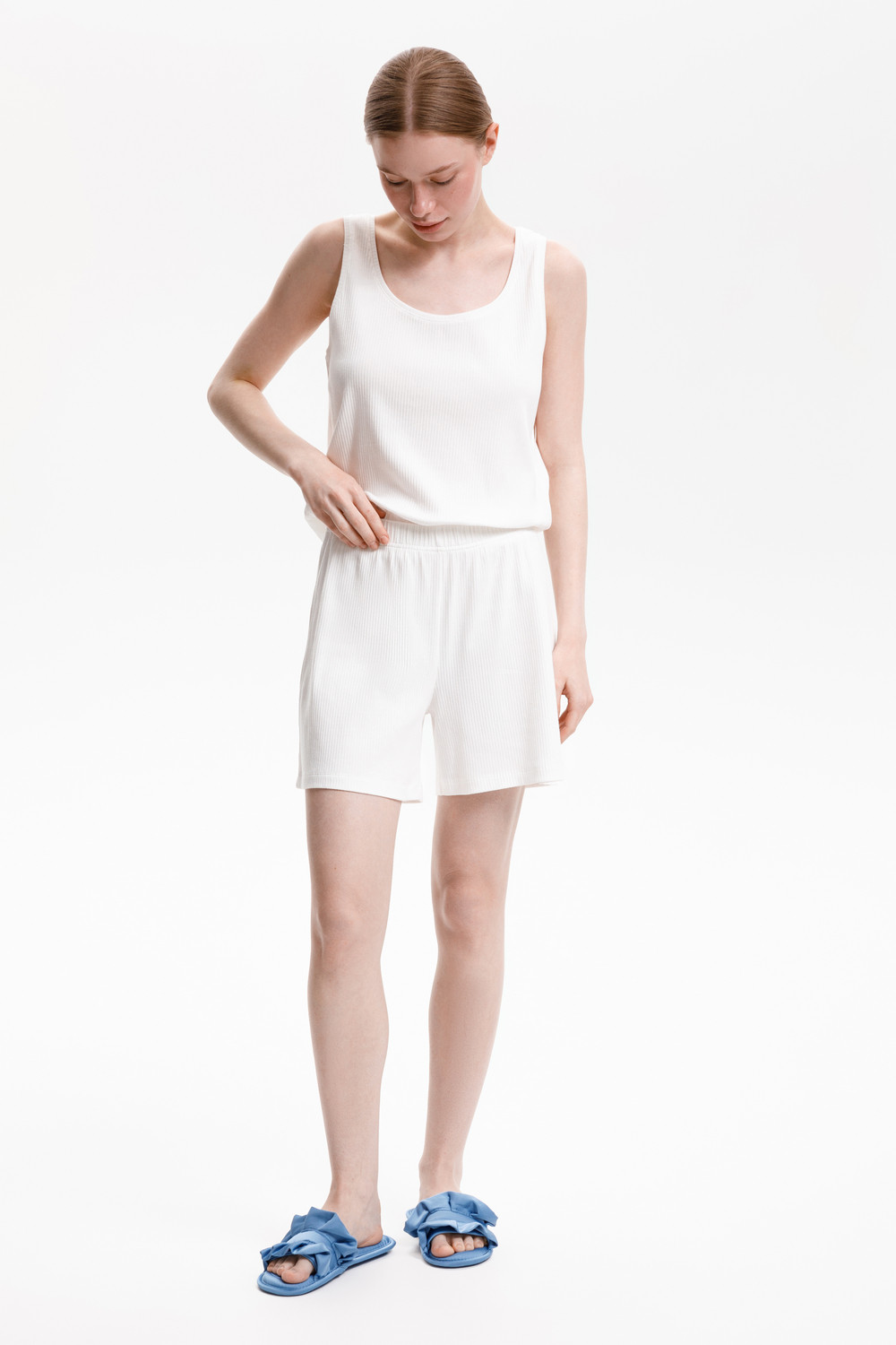 Комплект из нежнейшего высококачественного трикотажного полотна с добавлением спандекса. За счет фактуры переплетения и специальных обработок сохраняет силуэт и форму. Свободный крой топа и мягкий пояс шорт обеспечивают легкость и свободу движений.