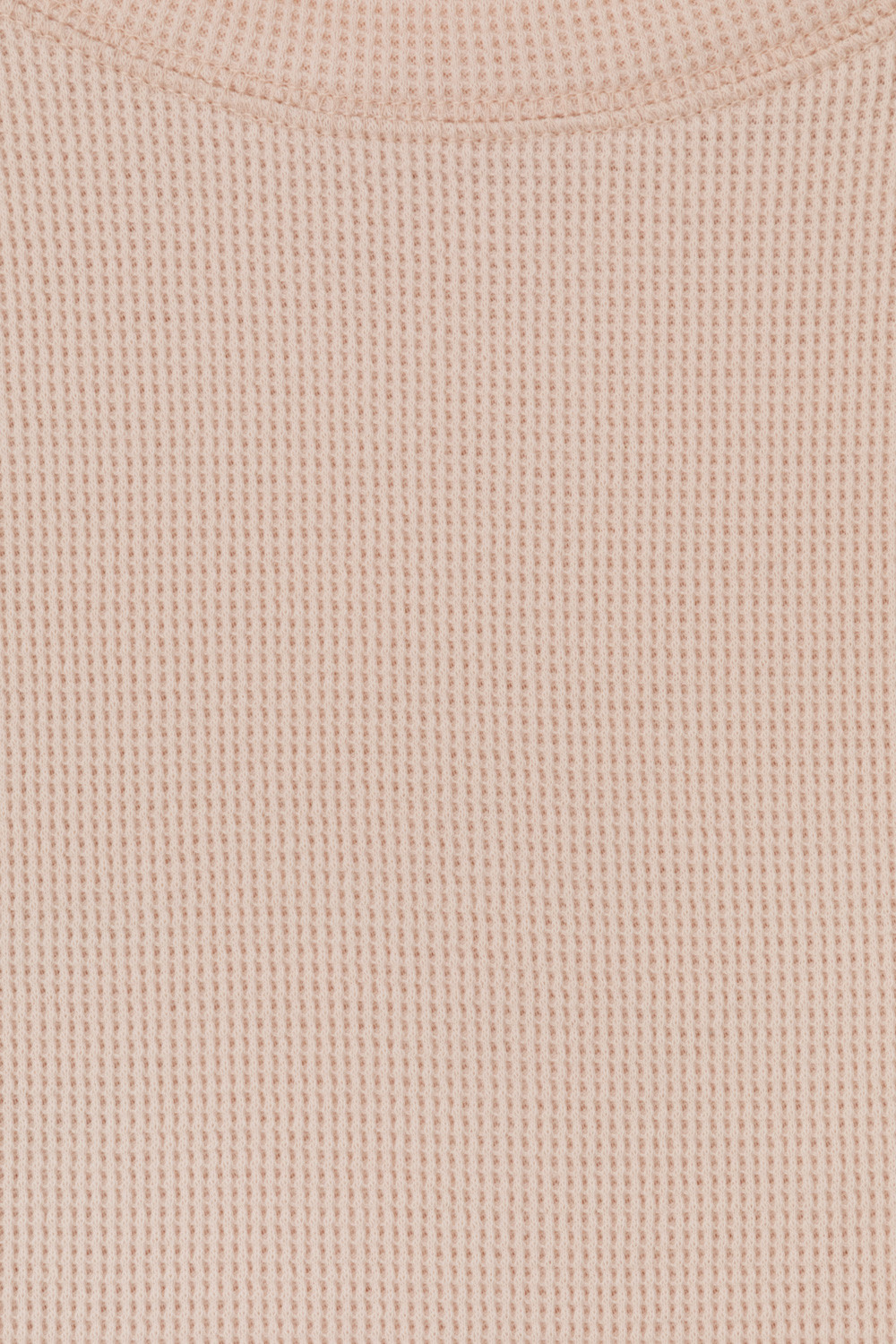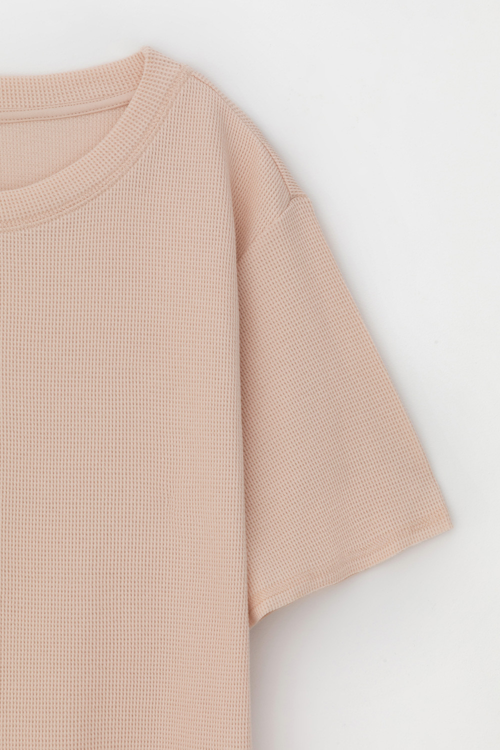 Комплект из объемного трикотажа с добавлением эластичных волокон. Свободный силуэт, мягкий пояс и отсутствие боковых швов на брюках обеспечат комфорт во время сна и отдыха.