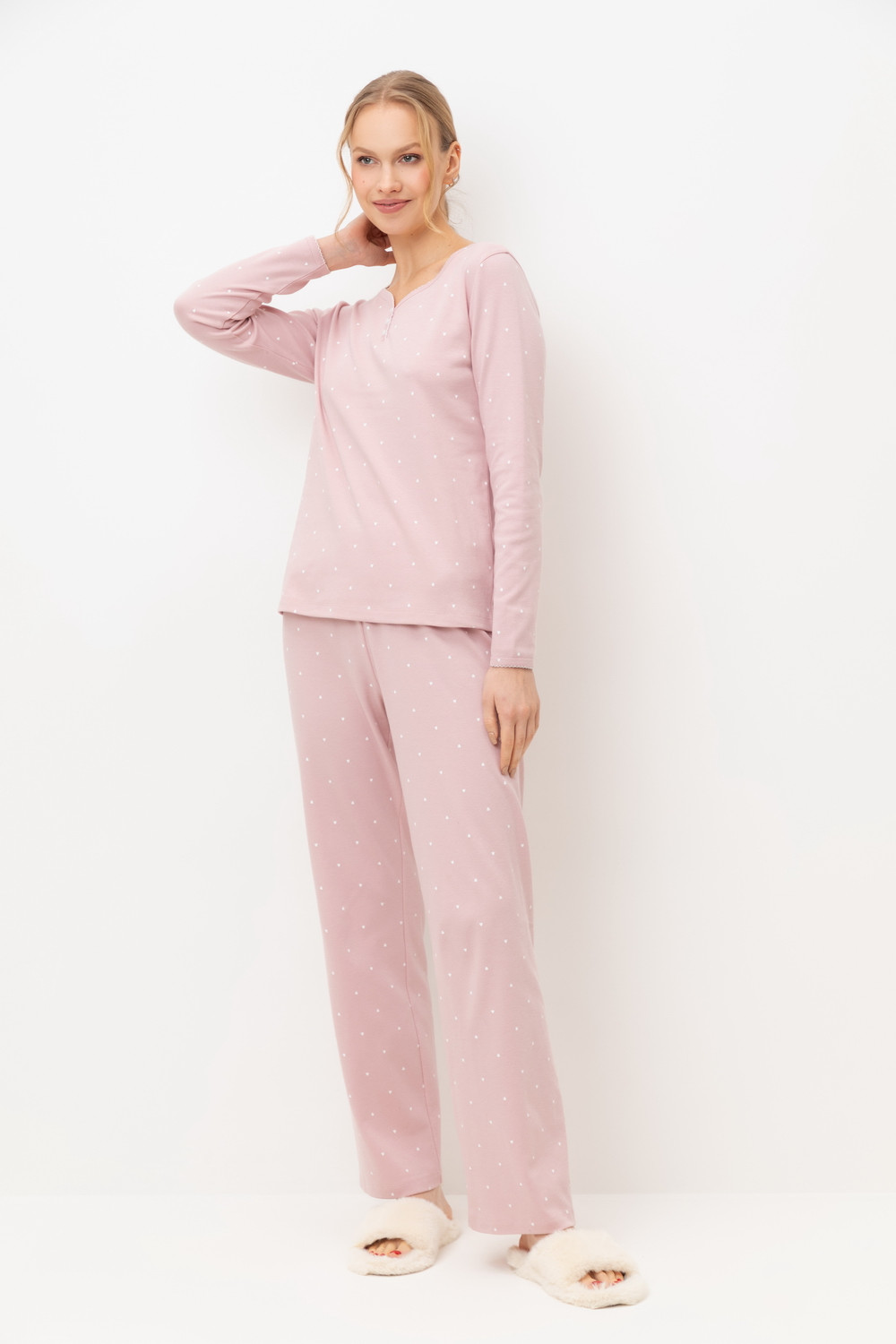 Комплект из высококачественного гребенного хлопка. Брюки с удобным поясом на резинке  добавляют комфорт и удобство домашнему отдыху.
