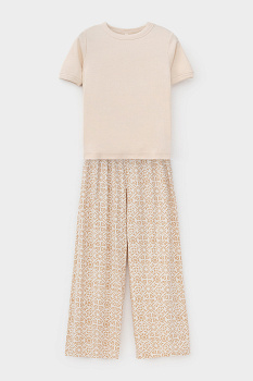 Комплект из высококачественного гребенного хлопка с добавлением вискозы. Брюки с удобным поясом на резинке и практичными карманами добавляют практичности и удобства.