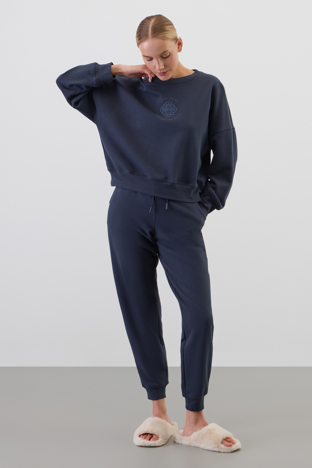 Комплект из 100% петельчатого футера.  Мягкий пояс и спортивный силуэт заставят вас влюбиться в его комфорт!