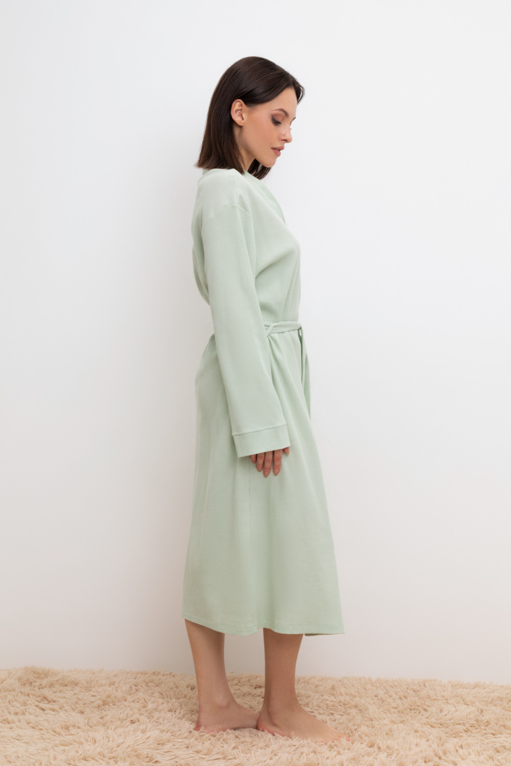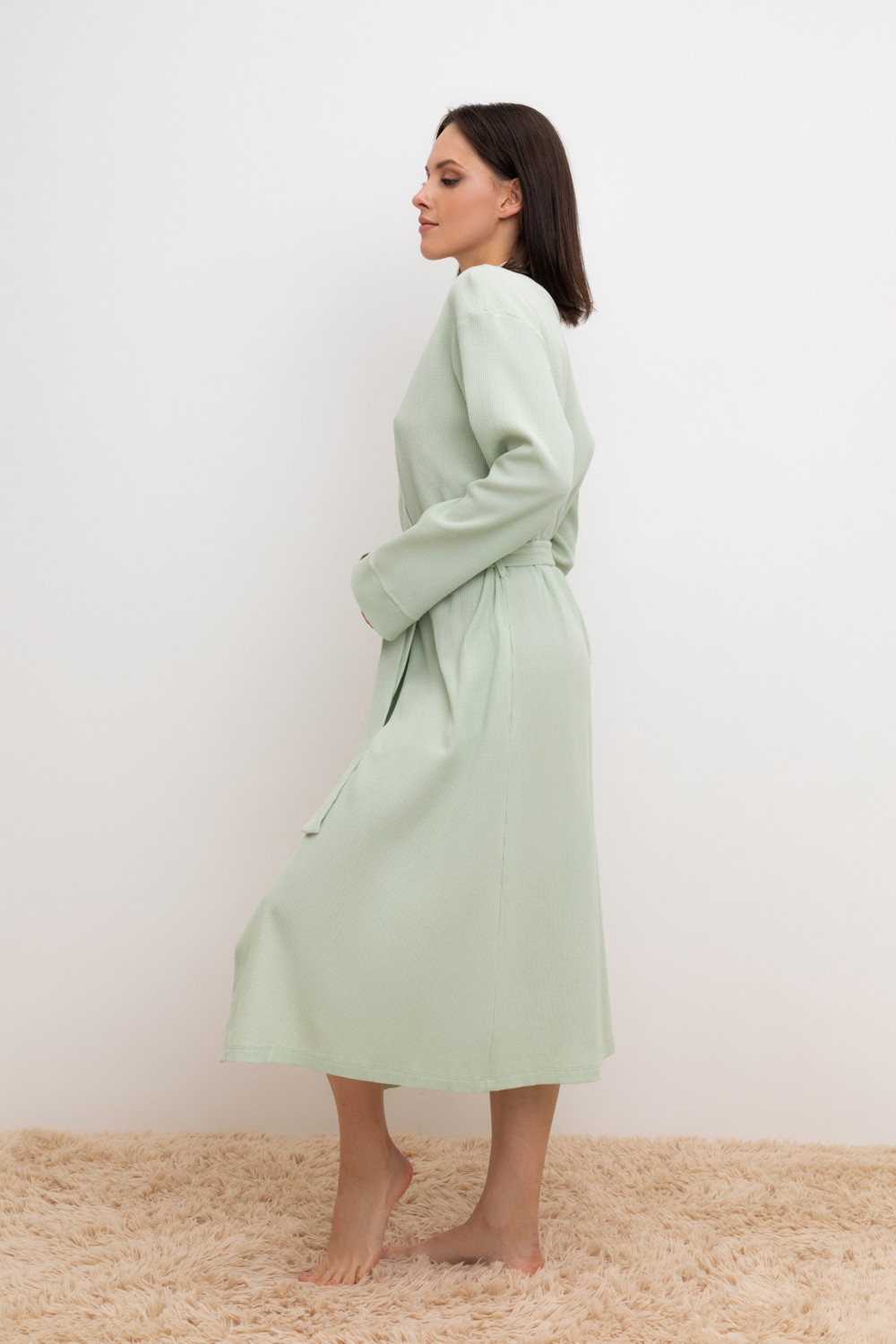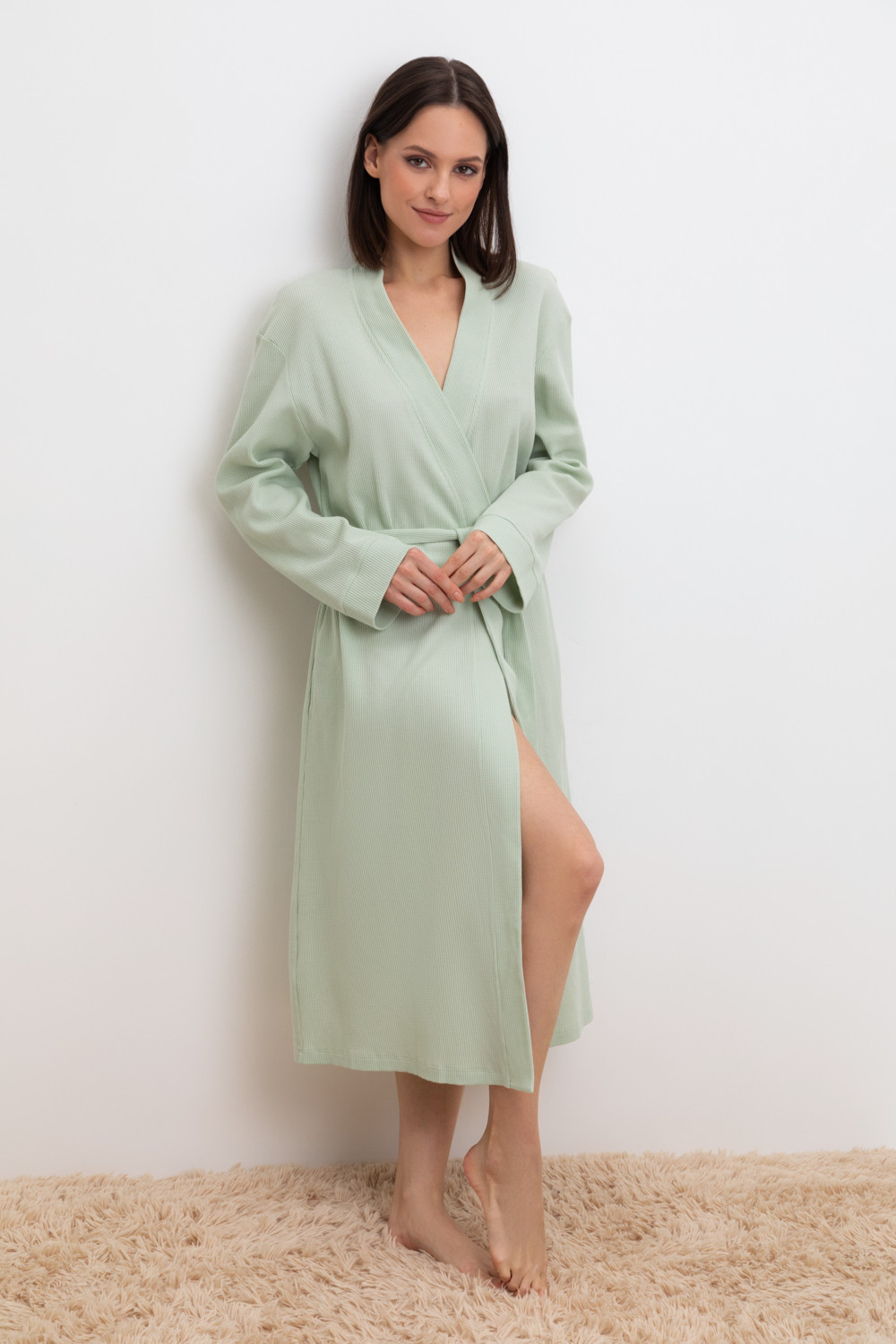 Уютный халат из 100% натурального хлопка на запах с длинными рукавами. В боковых швах два удобных кармана. С помощью пояса можно регулировать посадку и силуэт. Вафельное переплетение прекрасно впитывает влагу и сохраняет тепло.