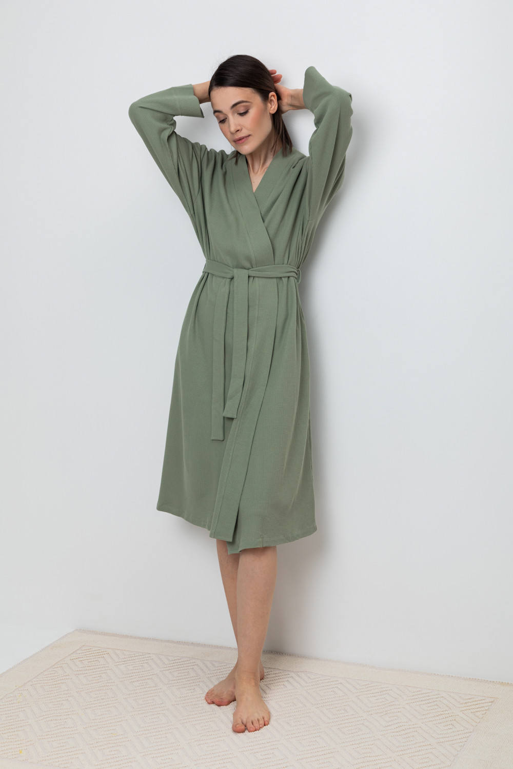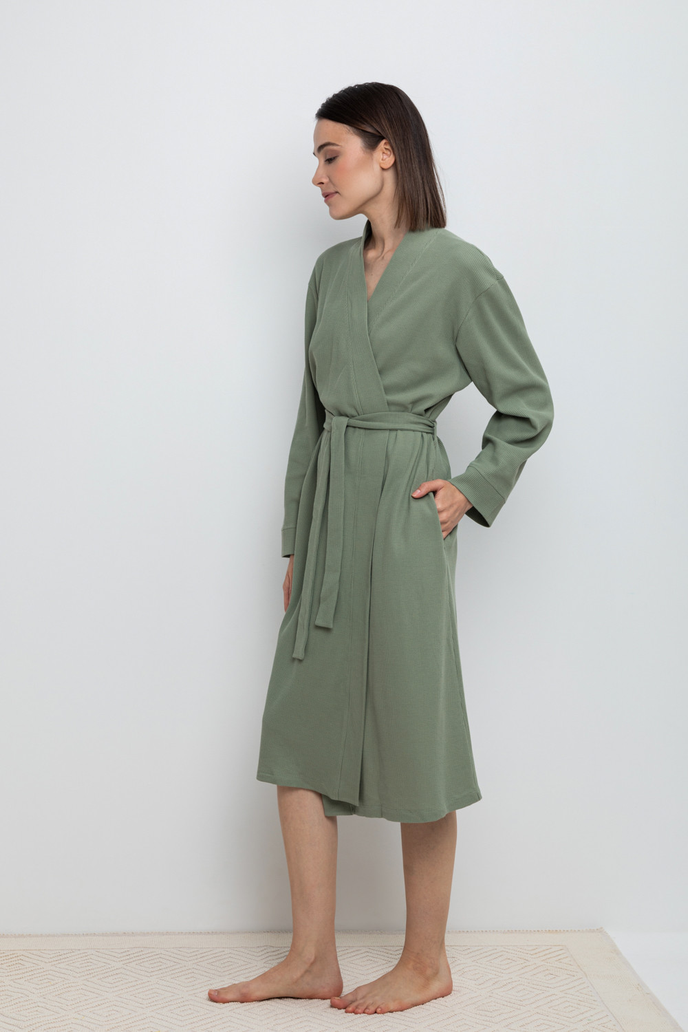 Уютный халат из 100% натурального хлопка на запах с длинными рукавами. В боковых швах два удобных кармана. С помощью пояса можно регулировать посадку и силуэт. Вафельное переплетение прекрасно впитывает влагу и сохраняет тепло.