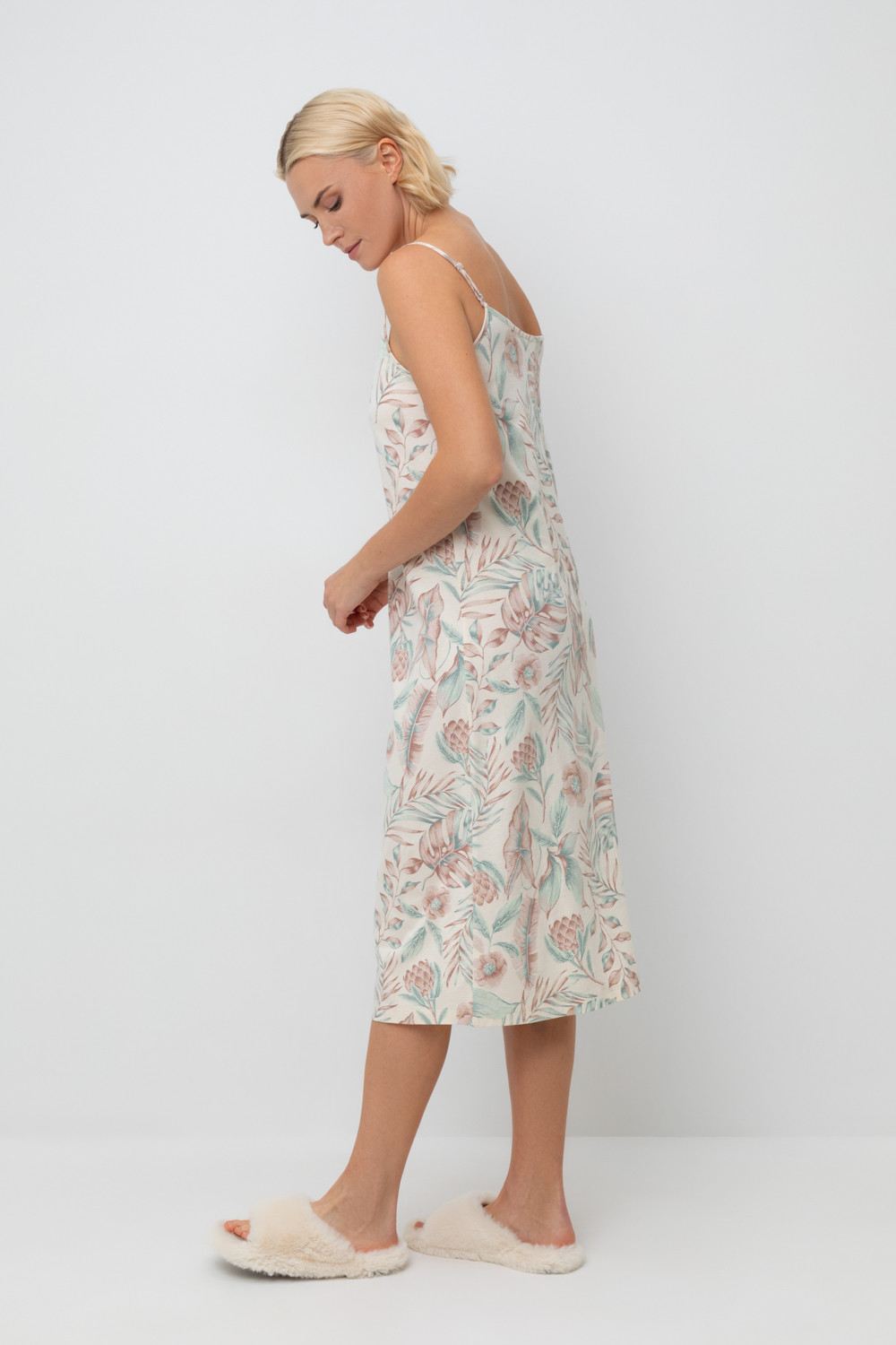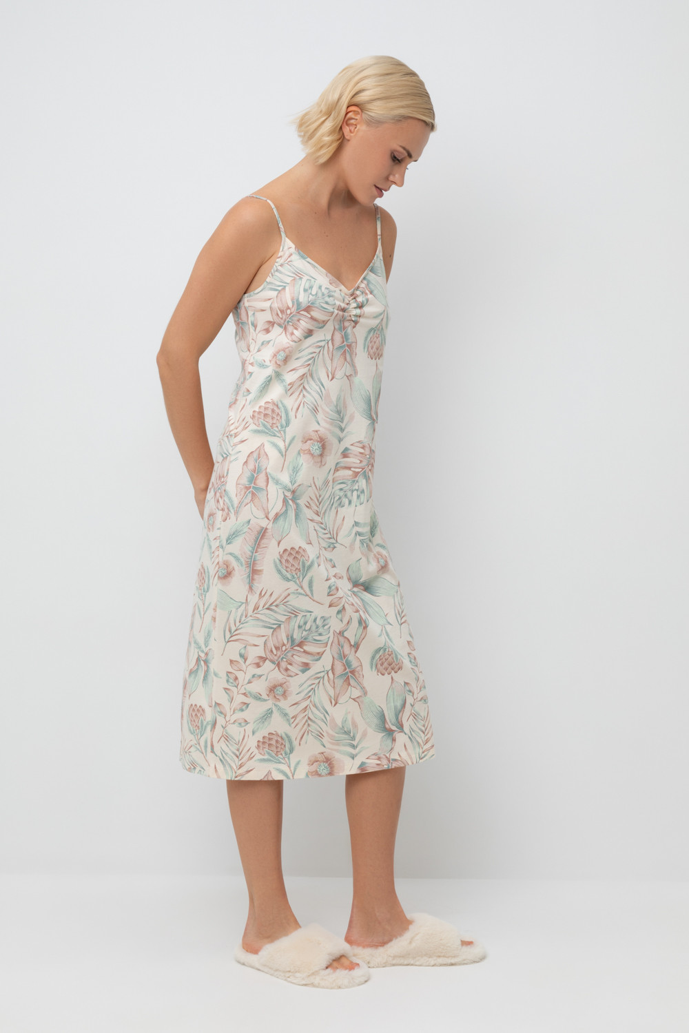 Сорочка из высококачественного гребенного хлопка. Регулируемые бретели позволяют подстроить их под ваши предпочтения, а свободный крой добавляет комфорта во время сна.