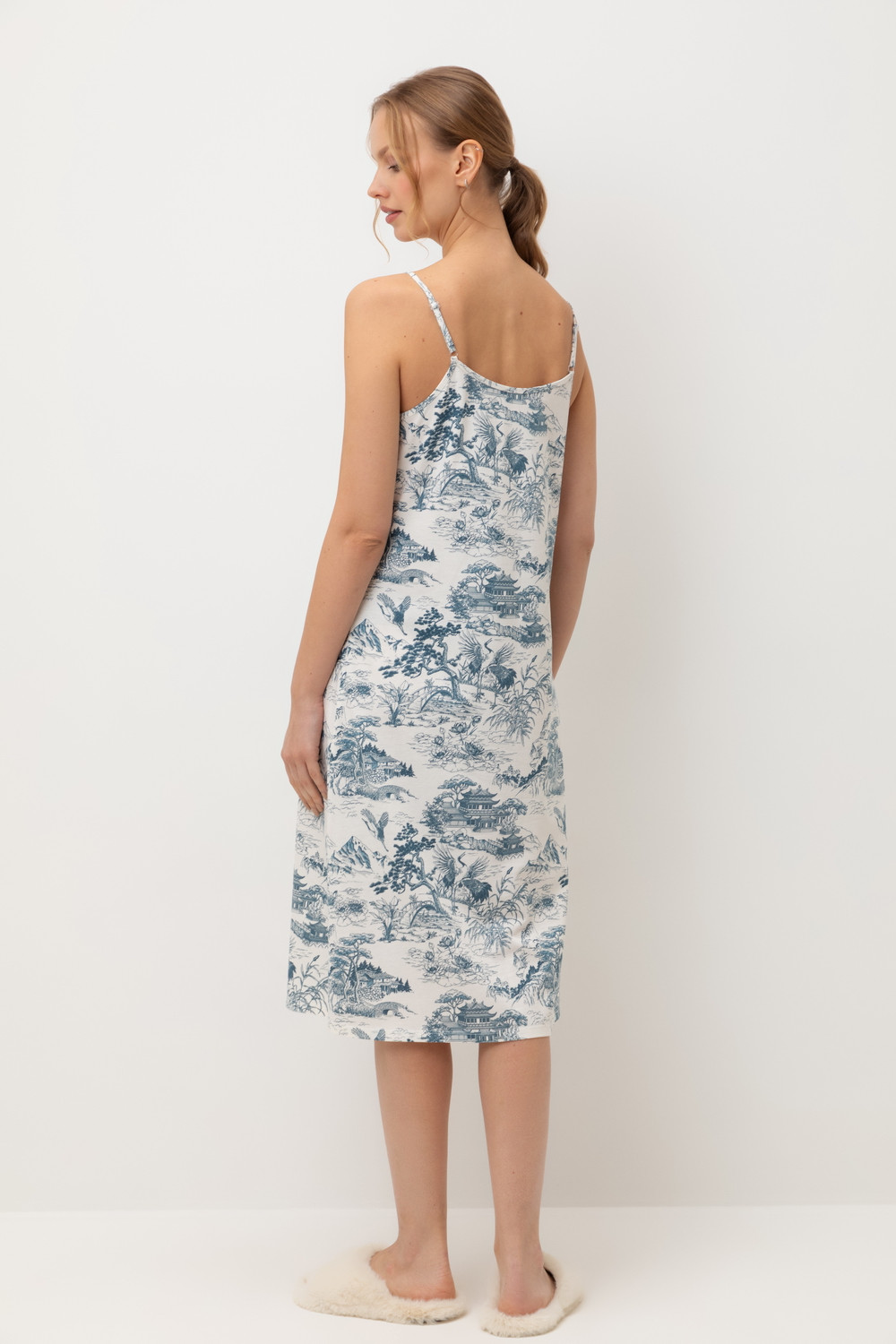 Сорочка из хлопка с нежнейшим модалом. Регулируемые бретели позволяют подстроить их под ваши предпочтения, а свободный крой добавляет комфорта во время сна.