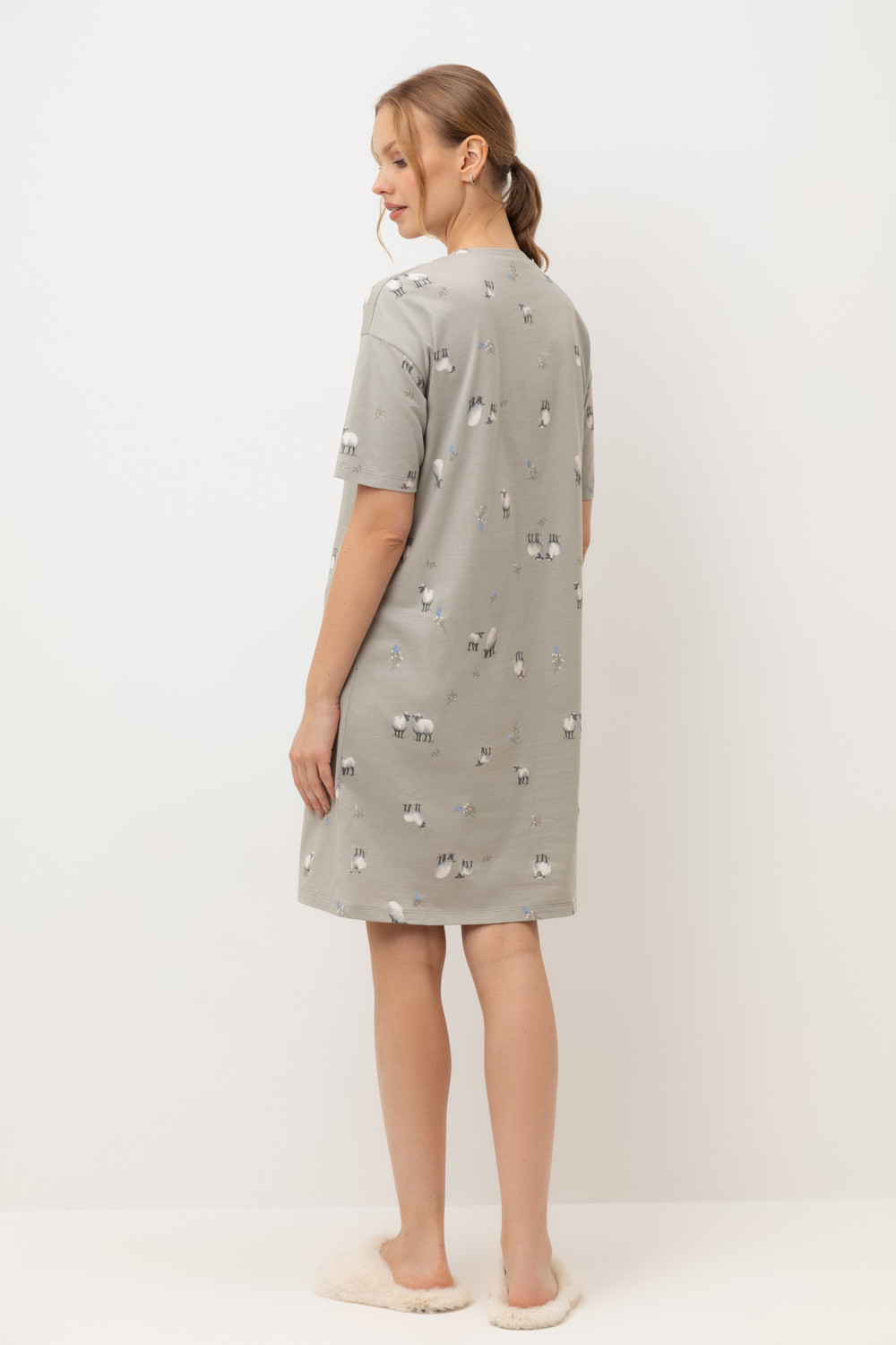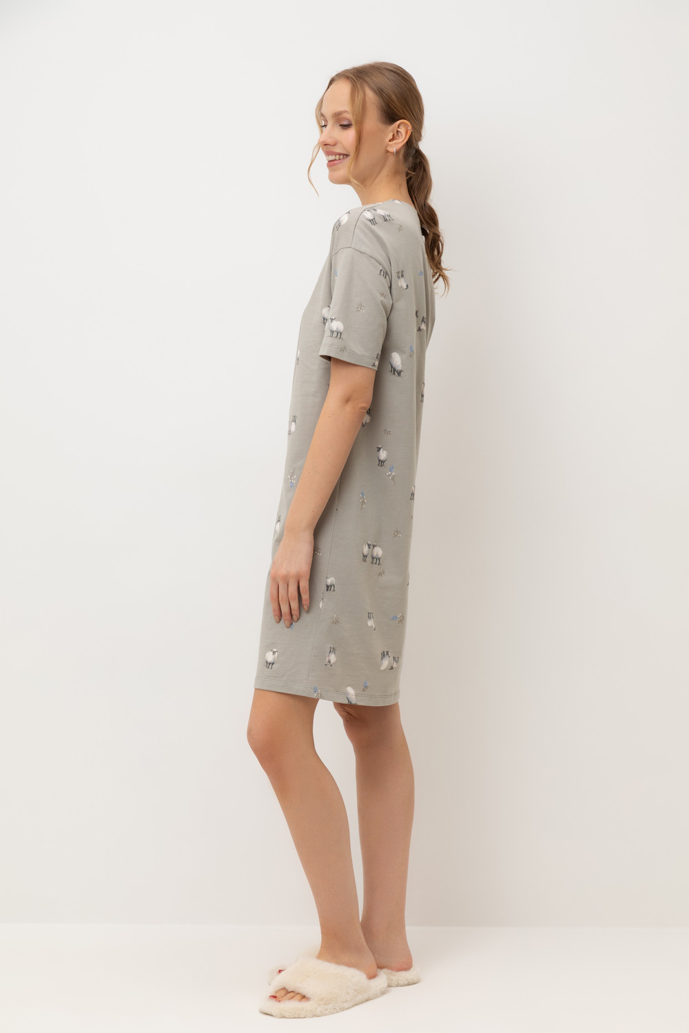 Комфортная сорочка выполнена из  высококачественного 100% хлопка. Свободный крой добавляет комфорт для домашнего отдыха