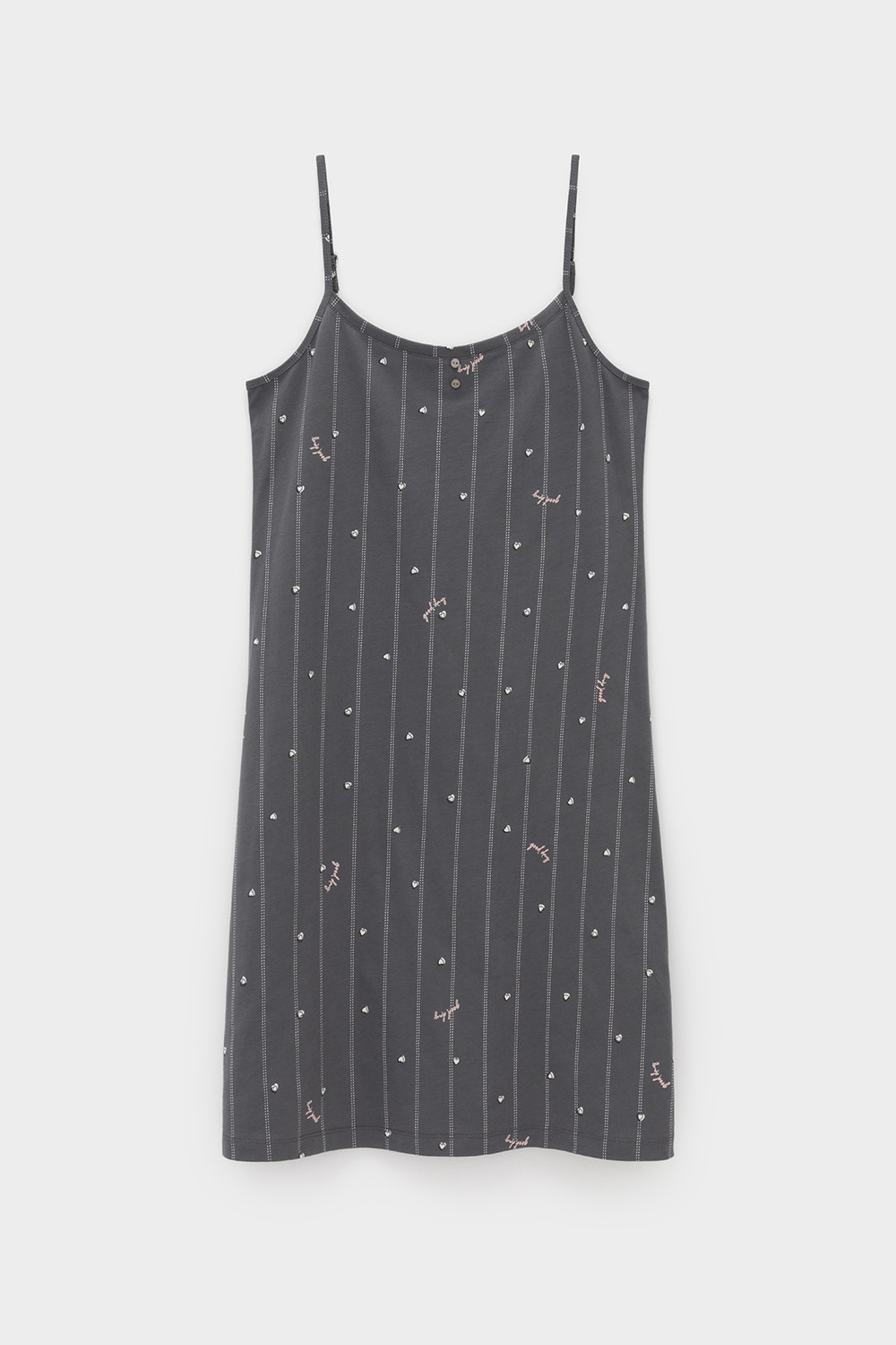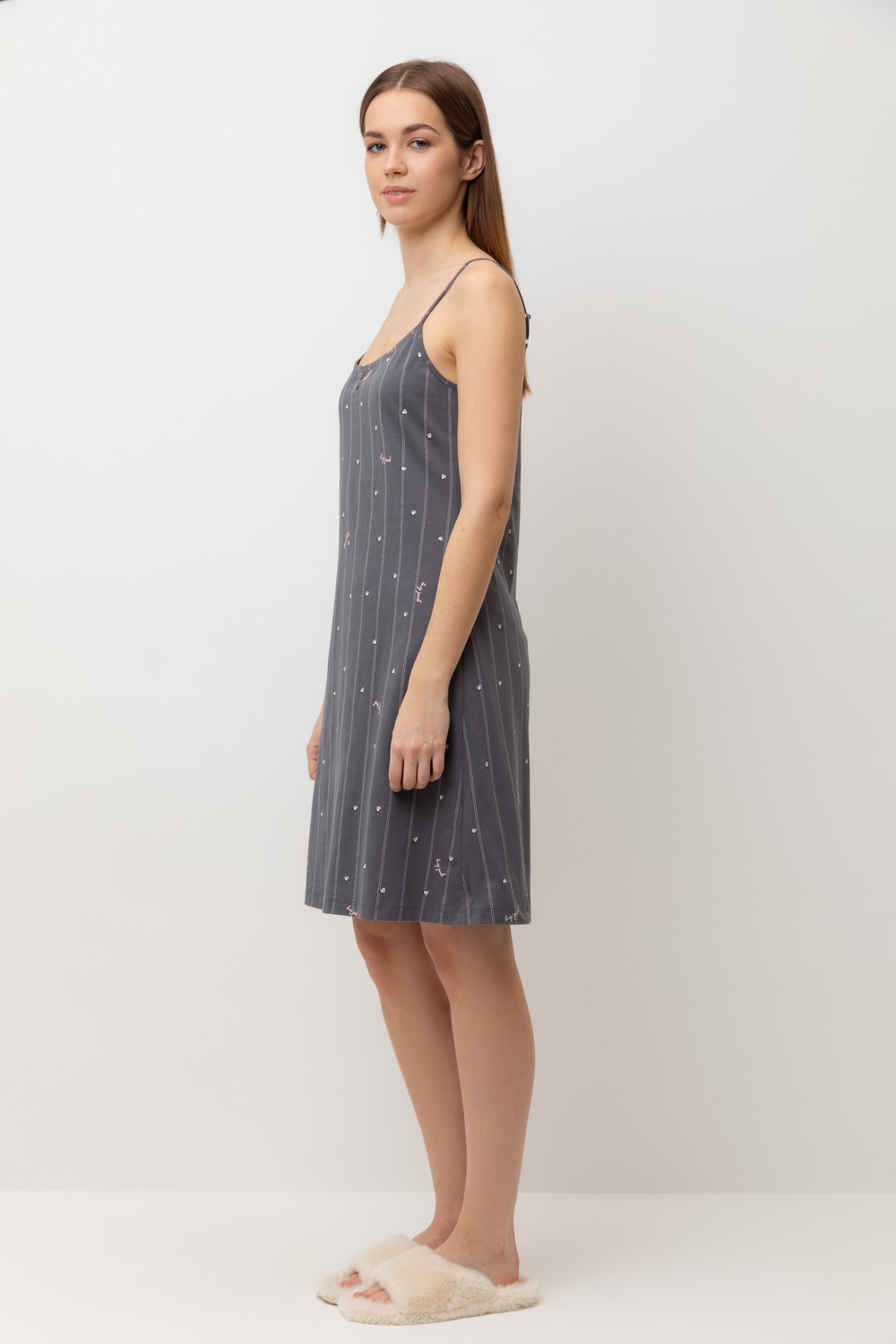 Сорочка из 100% хлопка. Регулируемые бретели позволяют подстроить их под ваши предпочтения, а удобный крой добавляет комфорта во время сна.