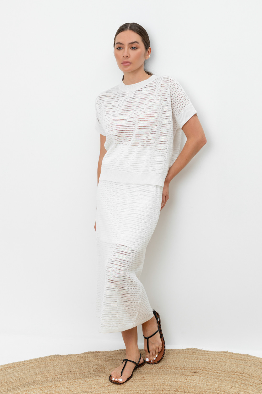 Вязаная ажурная юбка макси с подкладом. Состав 50% хлопок, 50% акрил. Благодаря акрилу в составе изделие не пилингуется.