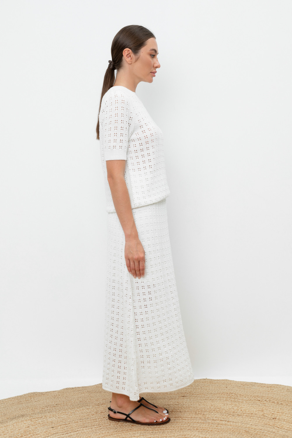 Вязаная ажурная юбка макси с подкладом. Состав 50% хлопок, 50% акрил. Благодаря акрилу в составе изделие не пилингуется.