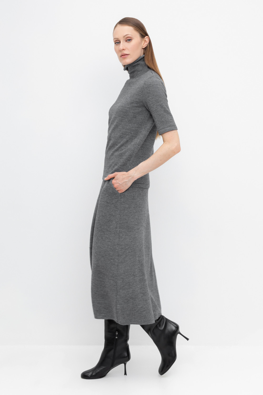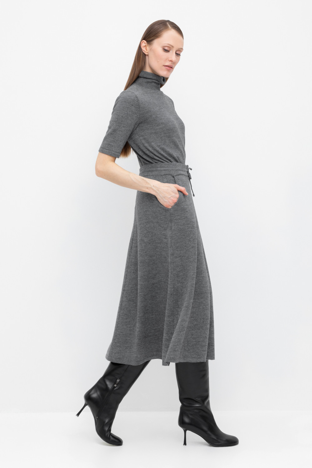 Вязаная юбка из премиальной пряжи, созданная с использованием инновационной технологии смешанного волокна. Деликатное сочетание шерсти и акрила обеспечивает непревзойденное ощущение мягкости, эластичность посадки и гарантированный комфорт при носке. Модель идеально адаптирована к телу, не создает дискомфорта и сохраняет безупречную форму.