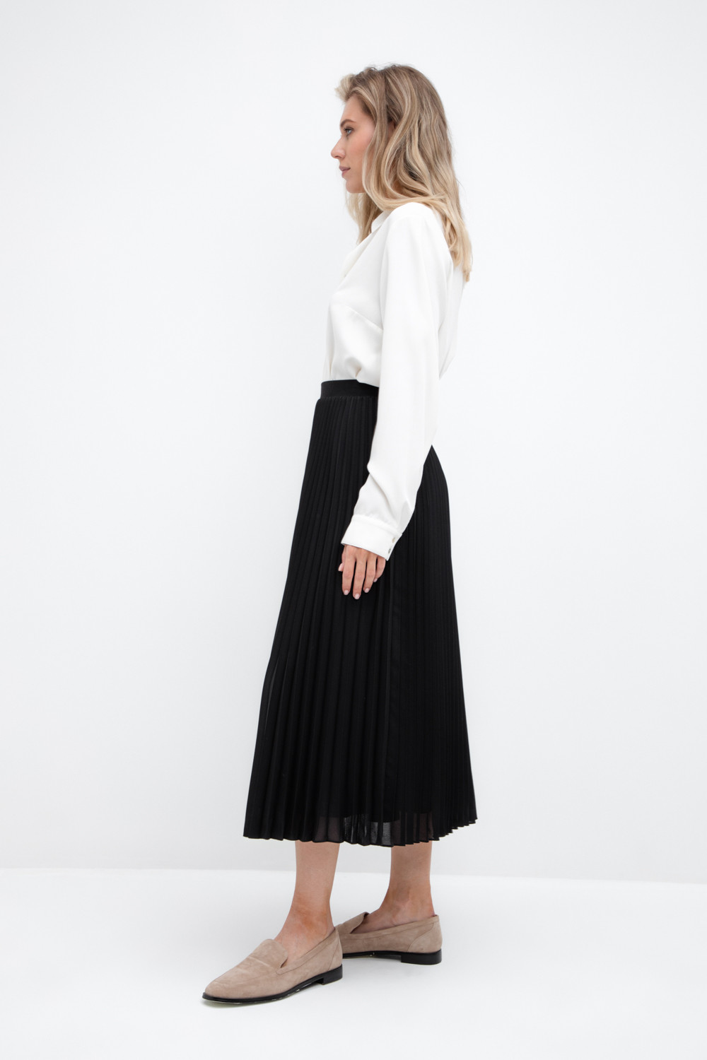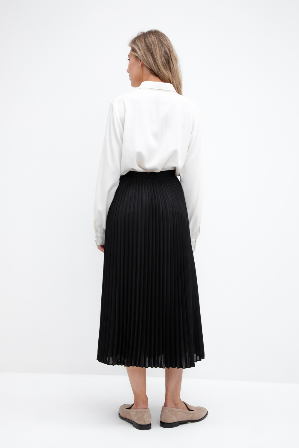 Силуэтная юбка плиссе с подкладом. Пояс на резинке обеспечивает комфортную посадку. Изделие сохраняет цвет и форму после многократных стирок.