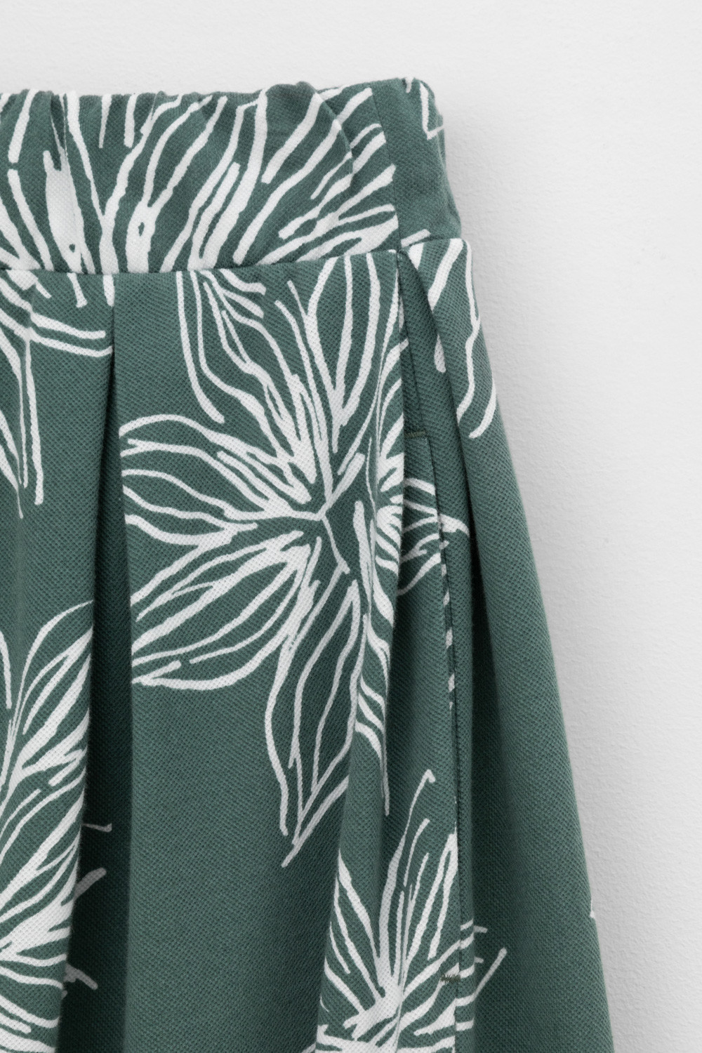 Струящаяся юбка из 100% хлопка пике с небольшой рельефной текстурой дарит ощущение комфорта и легкости. Крупные астры придают изделию летнее настроение.
