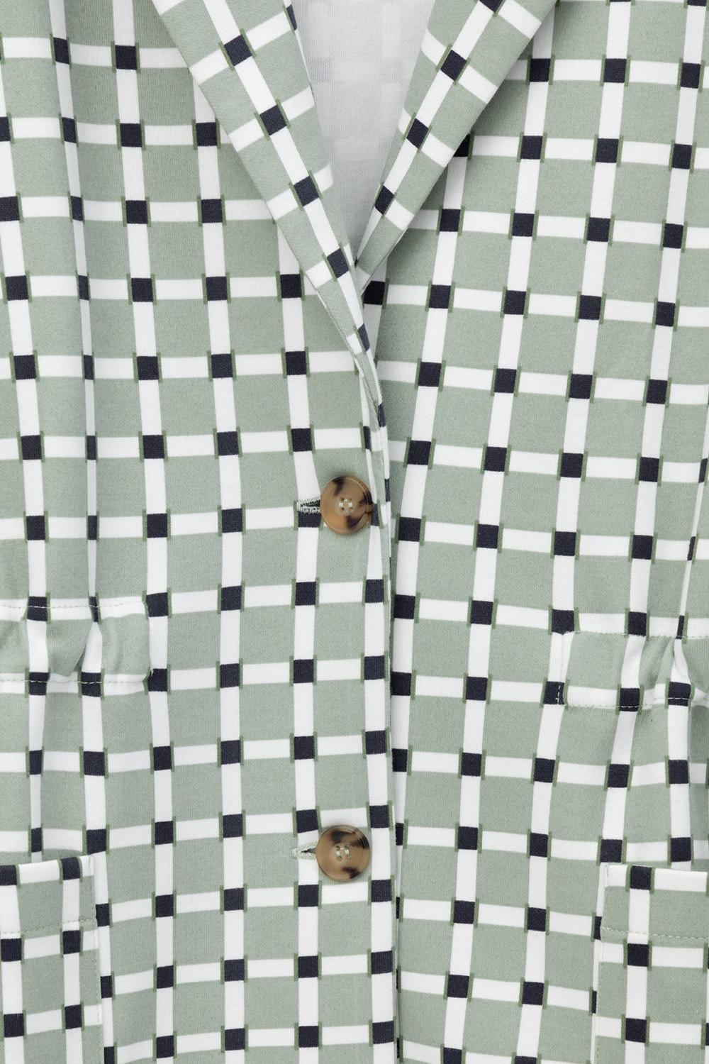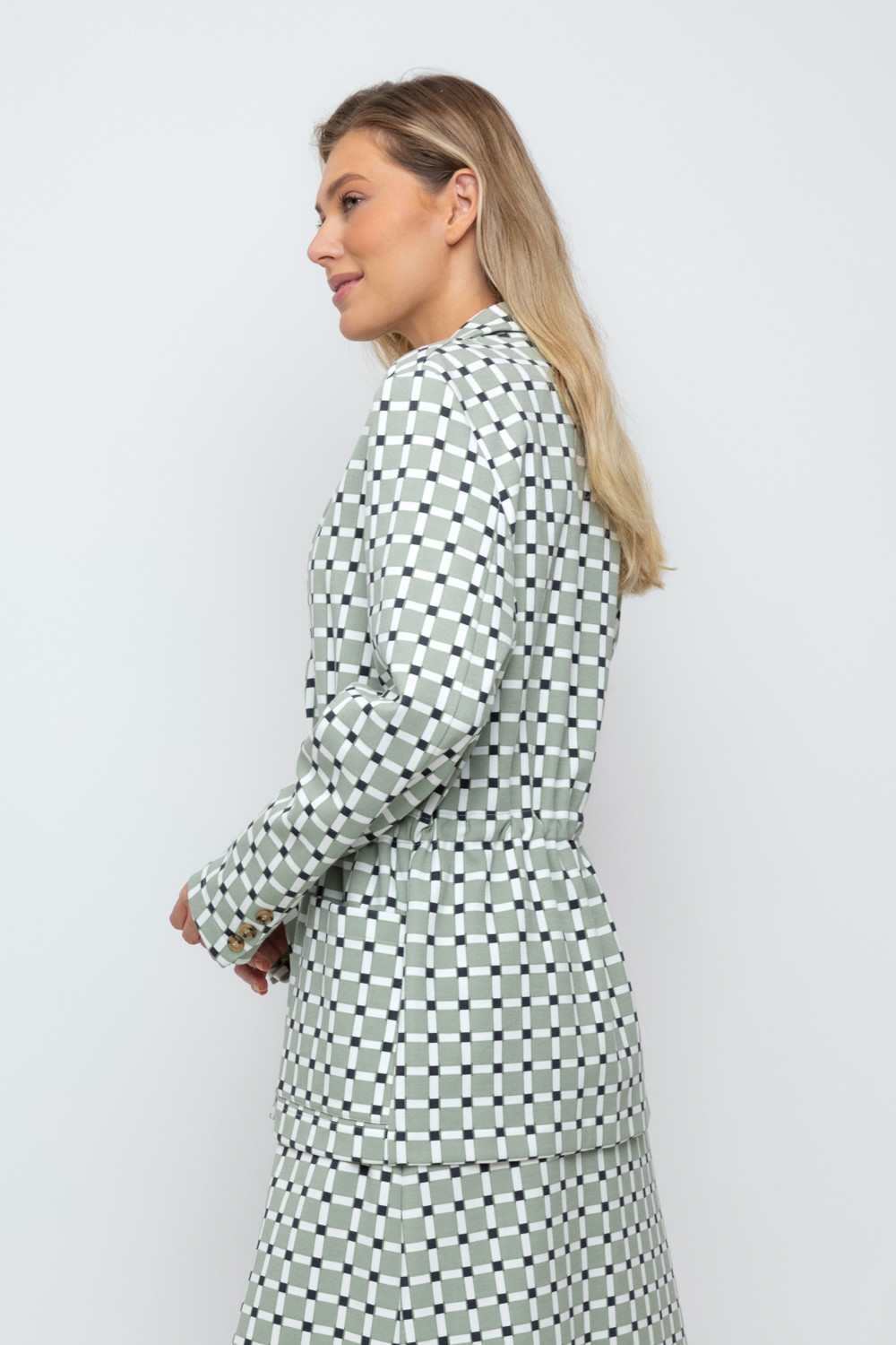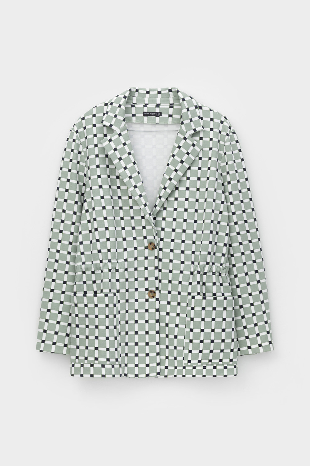 Женский жакет с карманами прямого кроя с кулиской из плотного набивного гладкого трикотажа интерлок. Гладкий и плотный материал на основе хлопка сохраняет форму.
