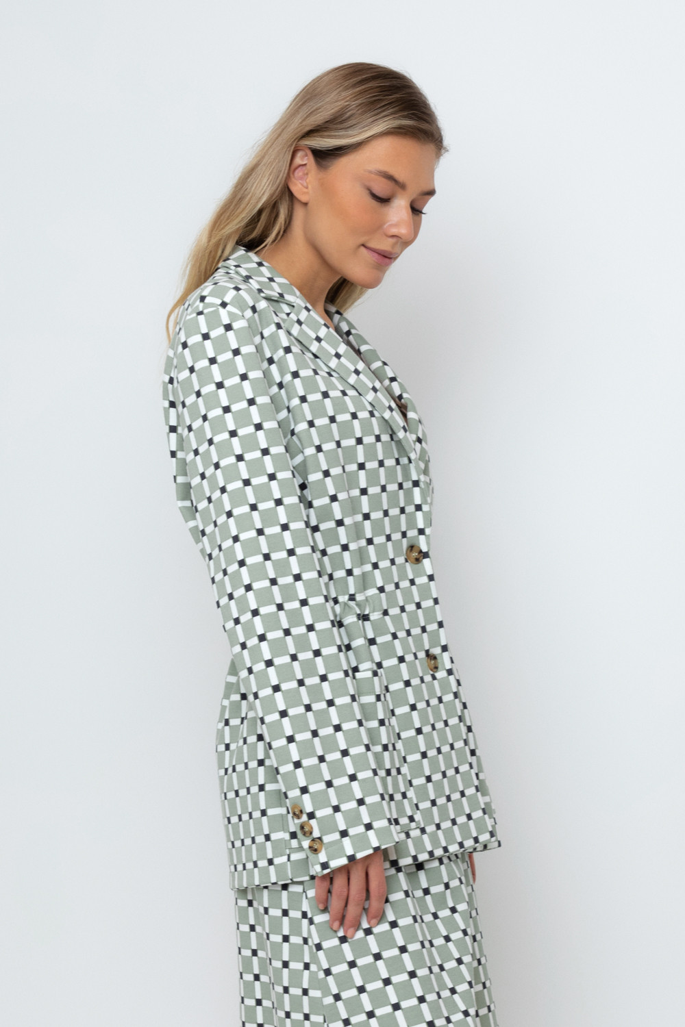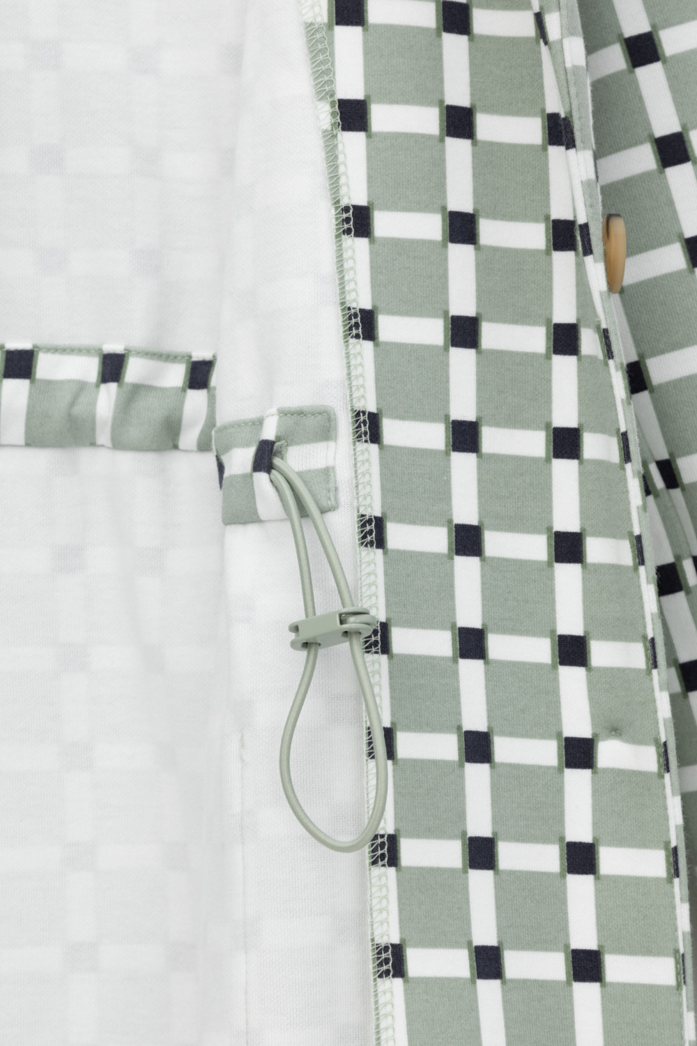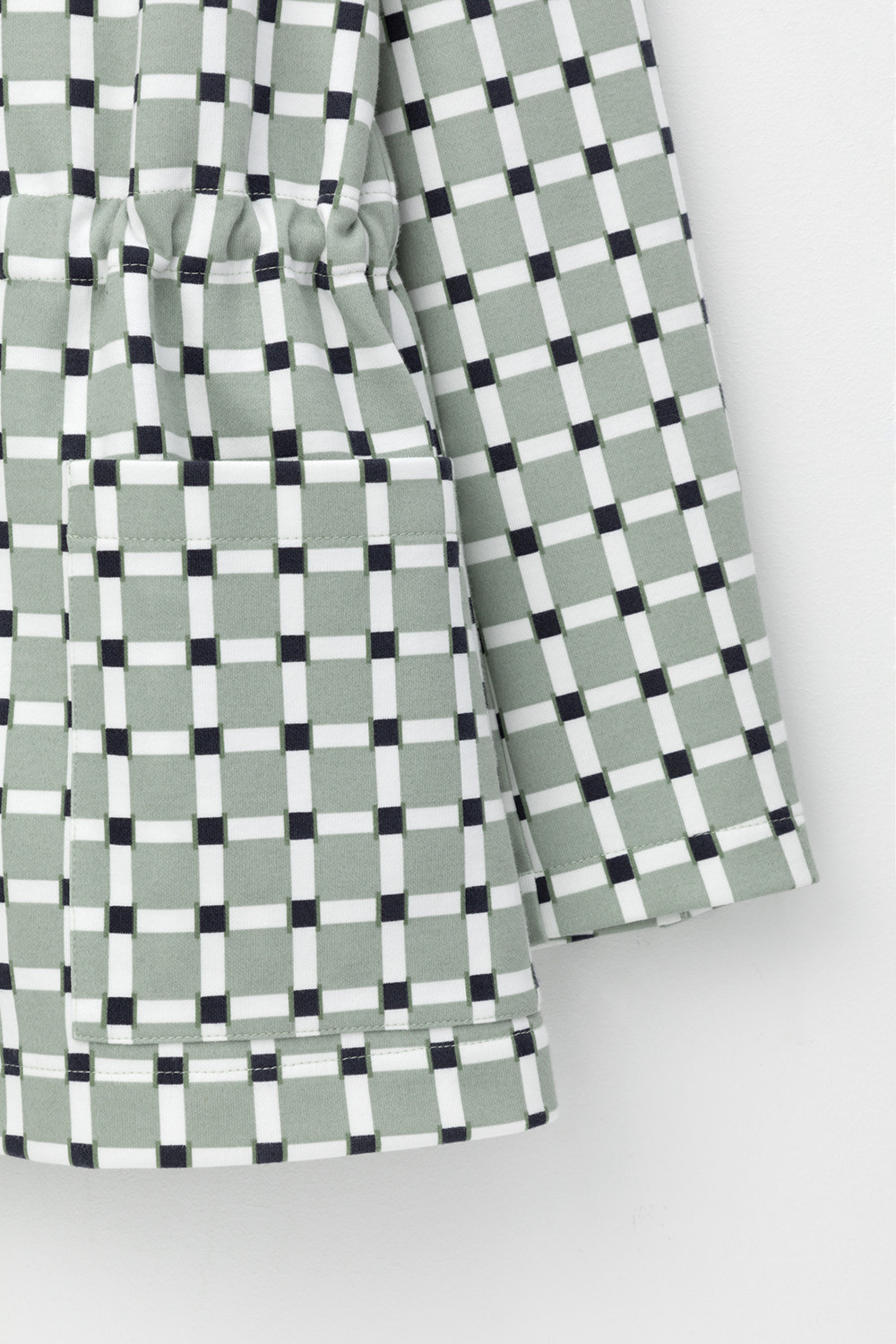 Женский жакет с карманами прямого кроя с кулиской из плотного набивного гладкого трикотажа интерлок. Гладкий и плотный материал на основе хлопка сохраняет форму.