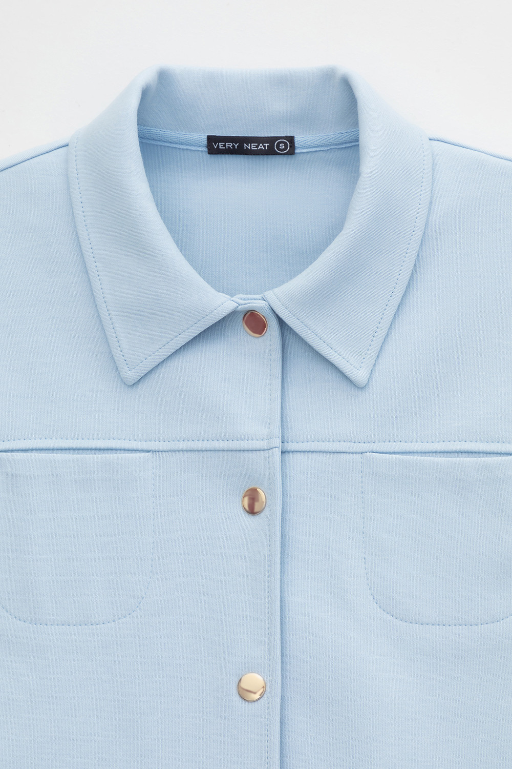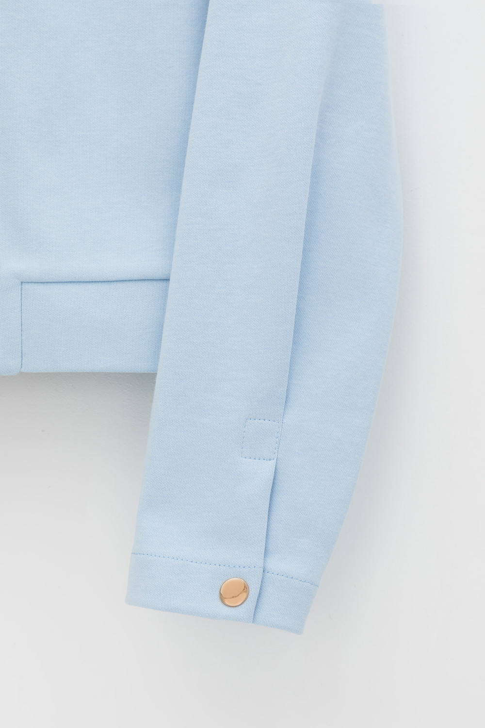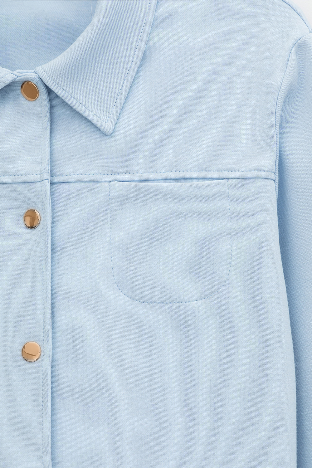 Укороченная куртка на кнопках с карманами из плотного гладкого трикотажа интерлок.