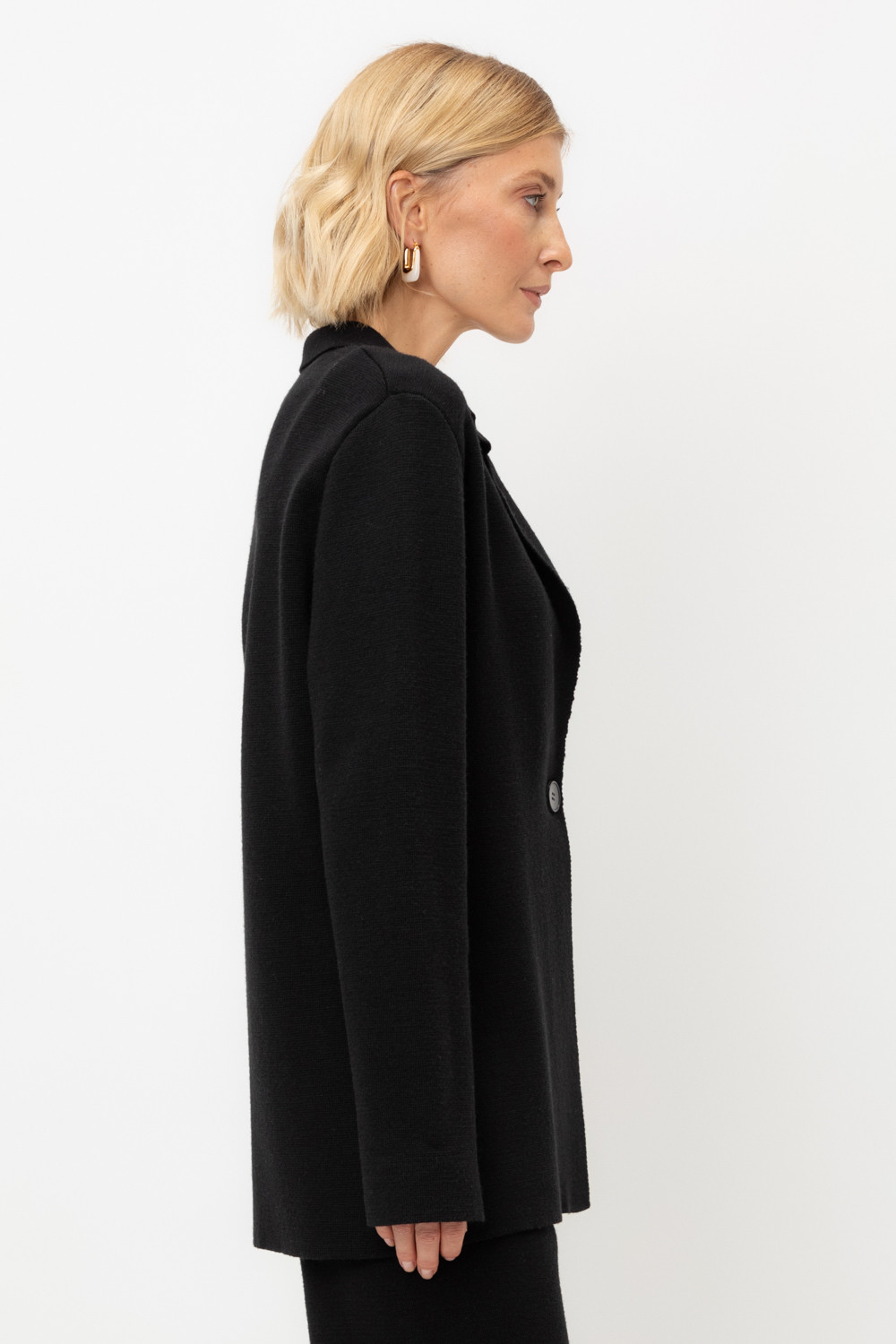 Женский жакет прямого кроя связан комбиниркой. Шерсть мериноса в составе сохраняет тепло, акрил делает изделие мягким. Прямой силуэт идеально подходит как к юбке, так и к брюкам.