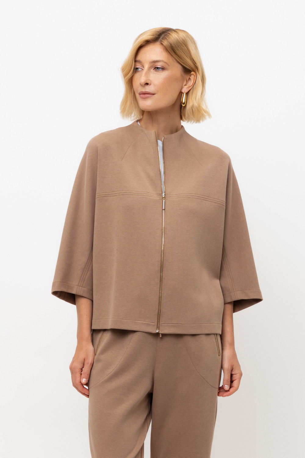 Жакет из высококачественного трикотажного полотна. За счет фактуры переплетения и специальных обработок сохраняет силуэт и форму. Хлопок в составе добавляет комфорт при носке. В сочетании с брюками из этой коллекции вы создадите расслабленный образ для летних дней.