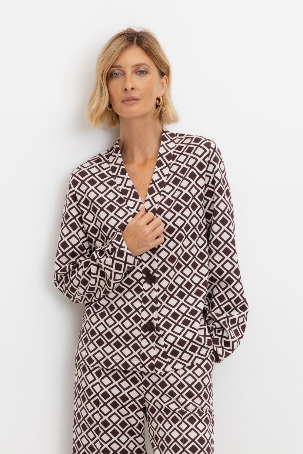 Летний жакет прилегающего силуэта из премиального трикотажа DOUBLE FACE. За счет фактуры переплетения и специальных обработок сохраняет силуэт и форму. Хлопок в составе добавляет комфорта при носке. В сочетании с брюками из этой коллекции вы создадите элегантный образ для летних дней.