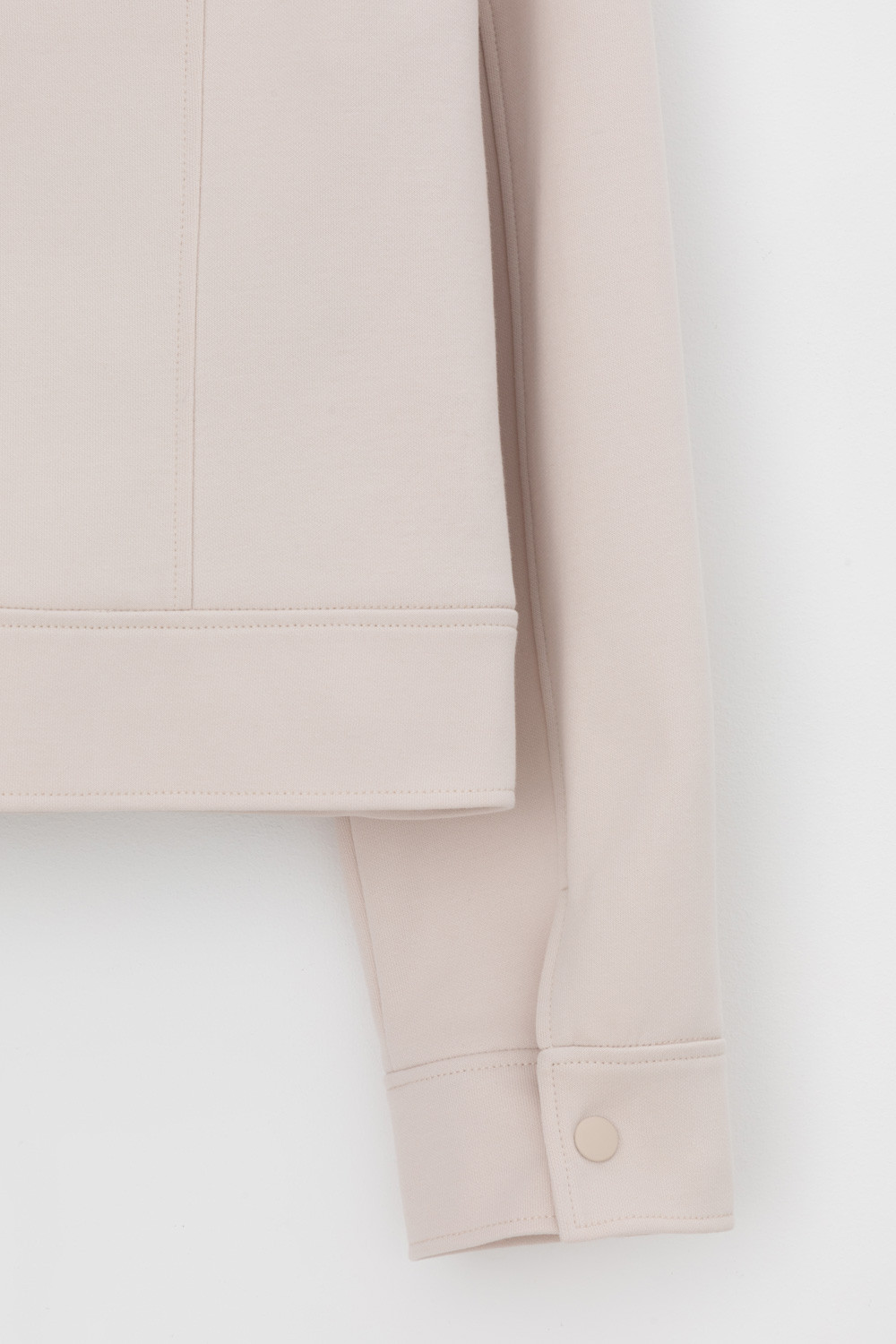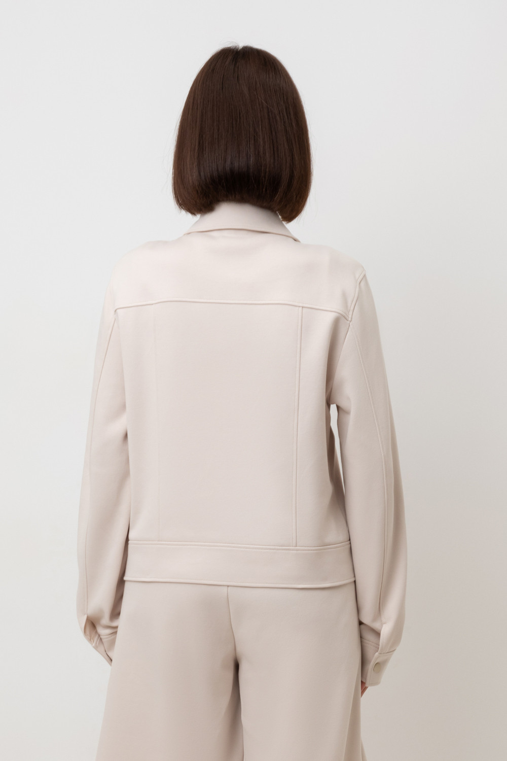 Укорочённый жакет, изготовленный из премиального трикотажного полотна DOUBLE FACE . За счет фактуры переплетения и специальных обработок сохраняет силуэт и форму, что позволяет сочетать его как с юбкой, так и с брюками. Хлопок в составе добавит комфорта при носке.