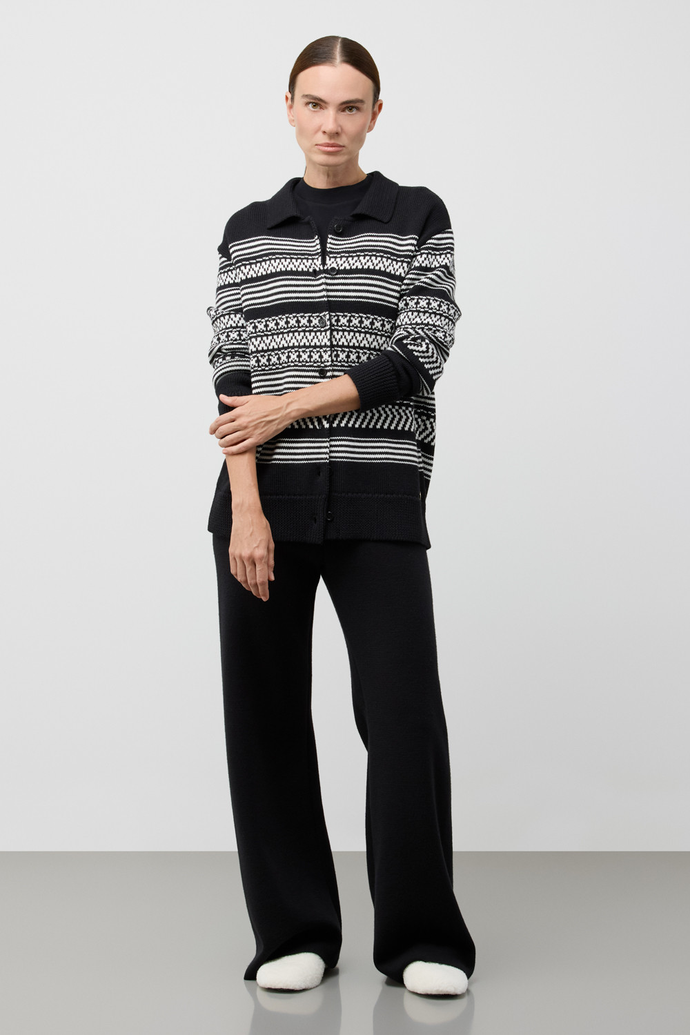 Лаконичный кардиган в скандинаском стиле из премиальной пряжи, созданный с использованием инновационной технологии смешанного волокна. Деликатное сочетание шерсти и акрила обеспечивает непревзойденный комфорт: изделие нежно облегает фигуру, гарантирует мягкость прикосновения и сохраняет безупречную форму.