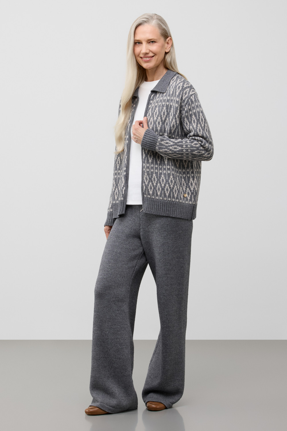 Лаконичный кардиган в скандинавском стиле, выполненный из высококачественной пряжи с использованием передовой технологии смешанных волокон. Тонкое сочетание шерсти и акрила создает уникальный комфорт: модель мягко подчеркивает силуэт, обеспечивает приятные ощущения при прикосновении и сохраняет безупречный внешний вид. Классический отложной воротник завершает дизайн изделия.