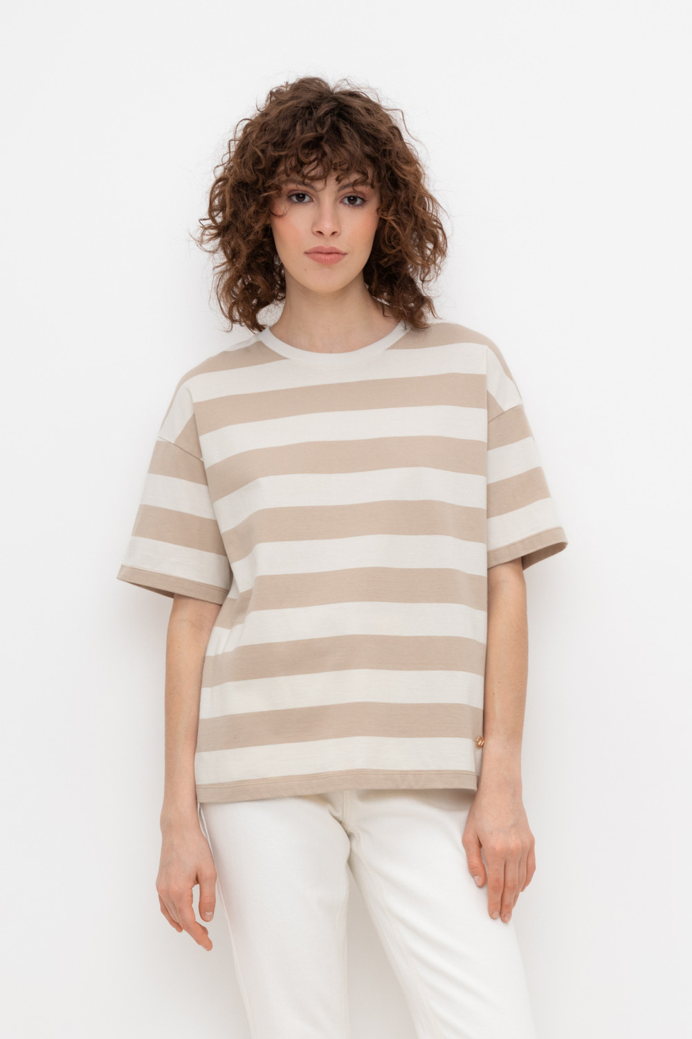 Свободная футболка в полоску из длинноволокнистого гребенного хлопка