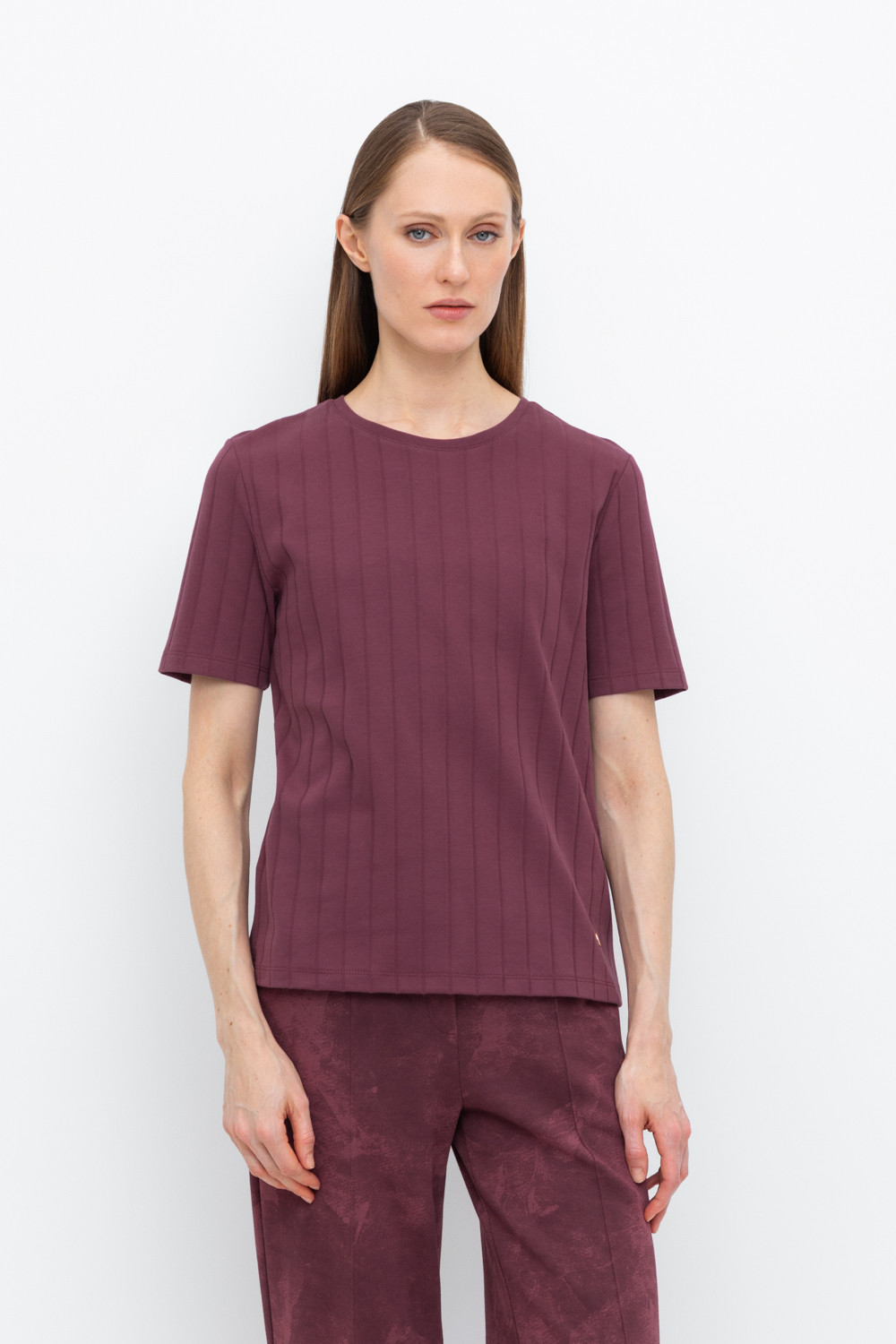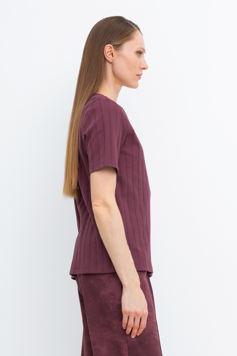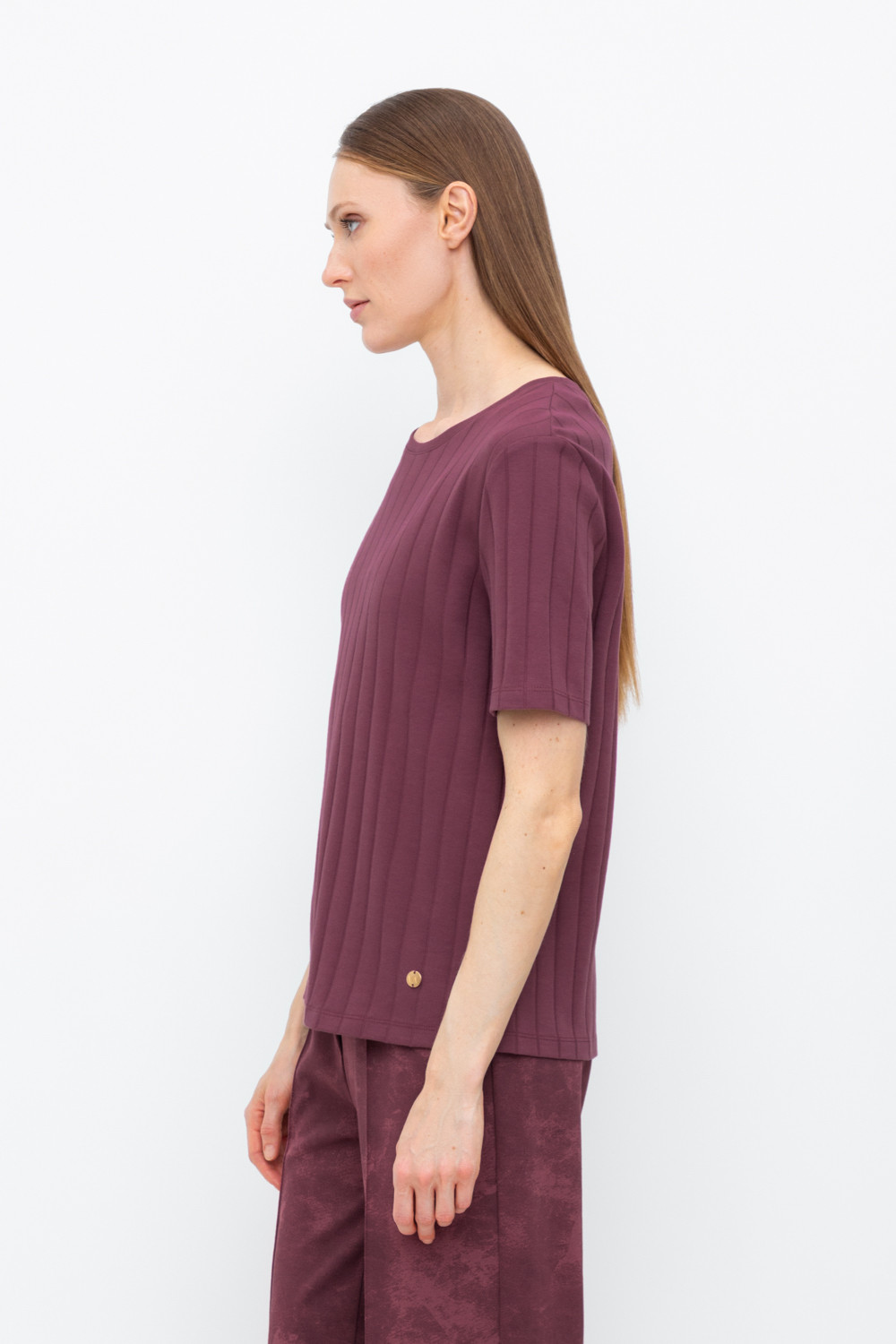 Базовая футболка из плотного гладкого трикотажа интерлок в рубчик.