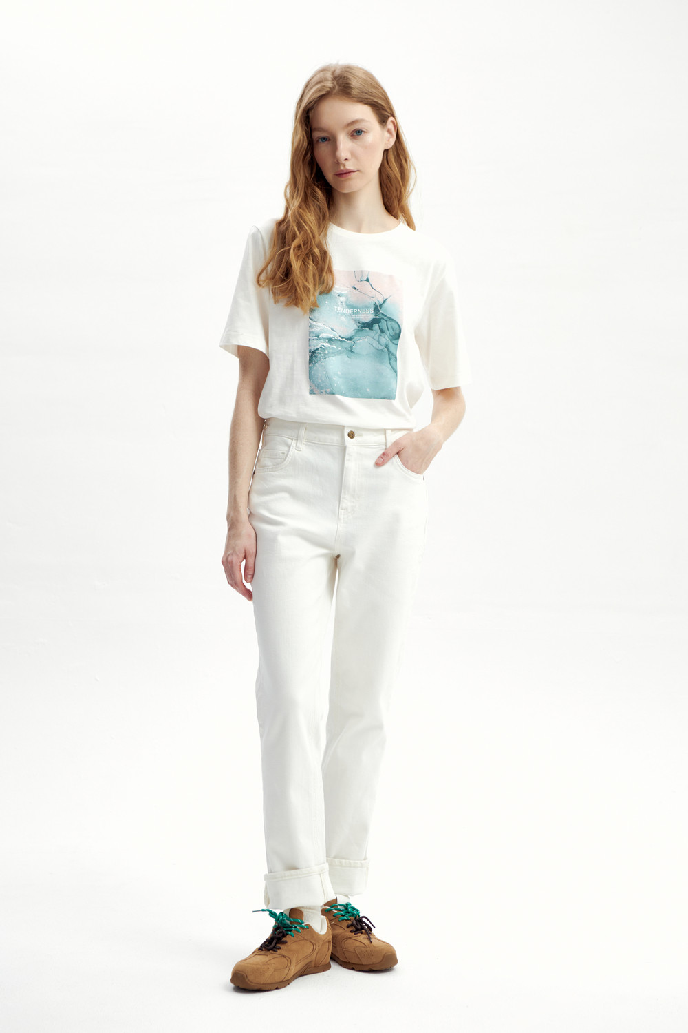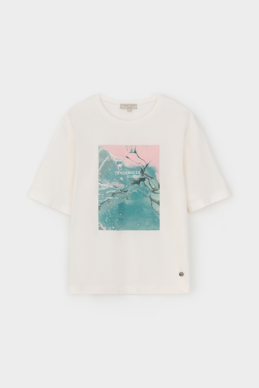 Футболка прямого силуэта из высококачественного гребенного хлопка. Мягкий на ощупь принт выполнен из водных красок, что обеспечивает устойчивость к многократным стиркам, а его дизайн добавляет летнего настроения.